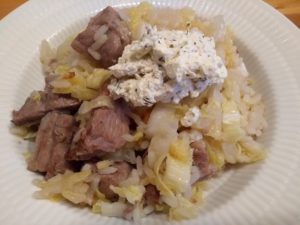 (2 servings) In a wok heat 2 tablespoons of oil and sauté 300 g of boar goulash. Add an espresso cup of rice, fry for a short...