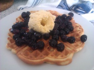 In summer you can eat the waffles with fresh blueberries and ice cream.