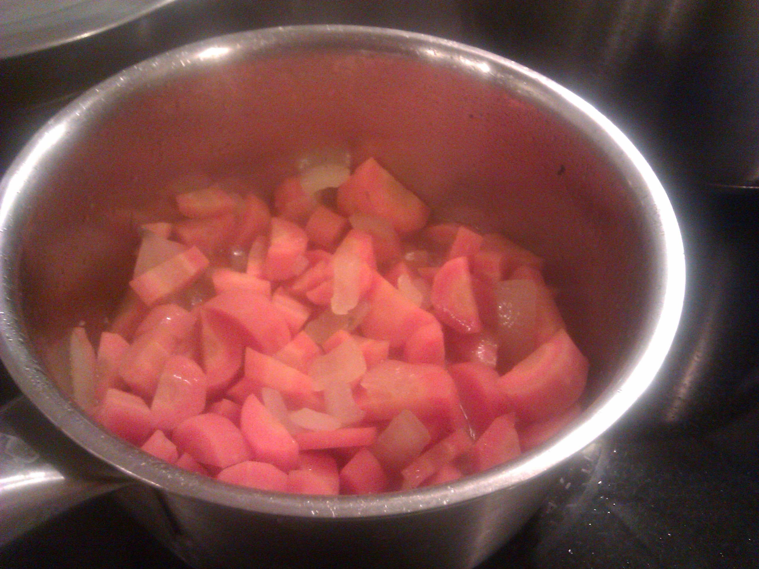 Pour one glass of cherries (400 grams of cherries and 300 ml of sugar water) into a pot and bring it to a boil. In a small bowl mix 40 grams of starch and 30 grams of vanilla sugar (alternatively you can use one package of vanilla pudding powder and 30 grams of sugar) with 50 ml of water. Pour the mixture into the boiling cherries and turn of the heat.
