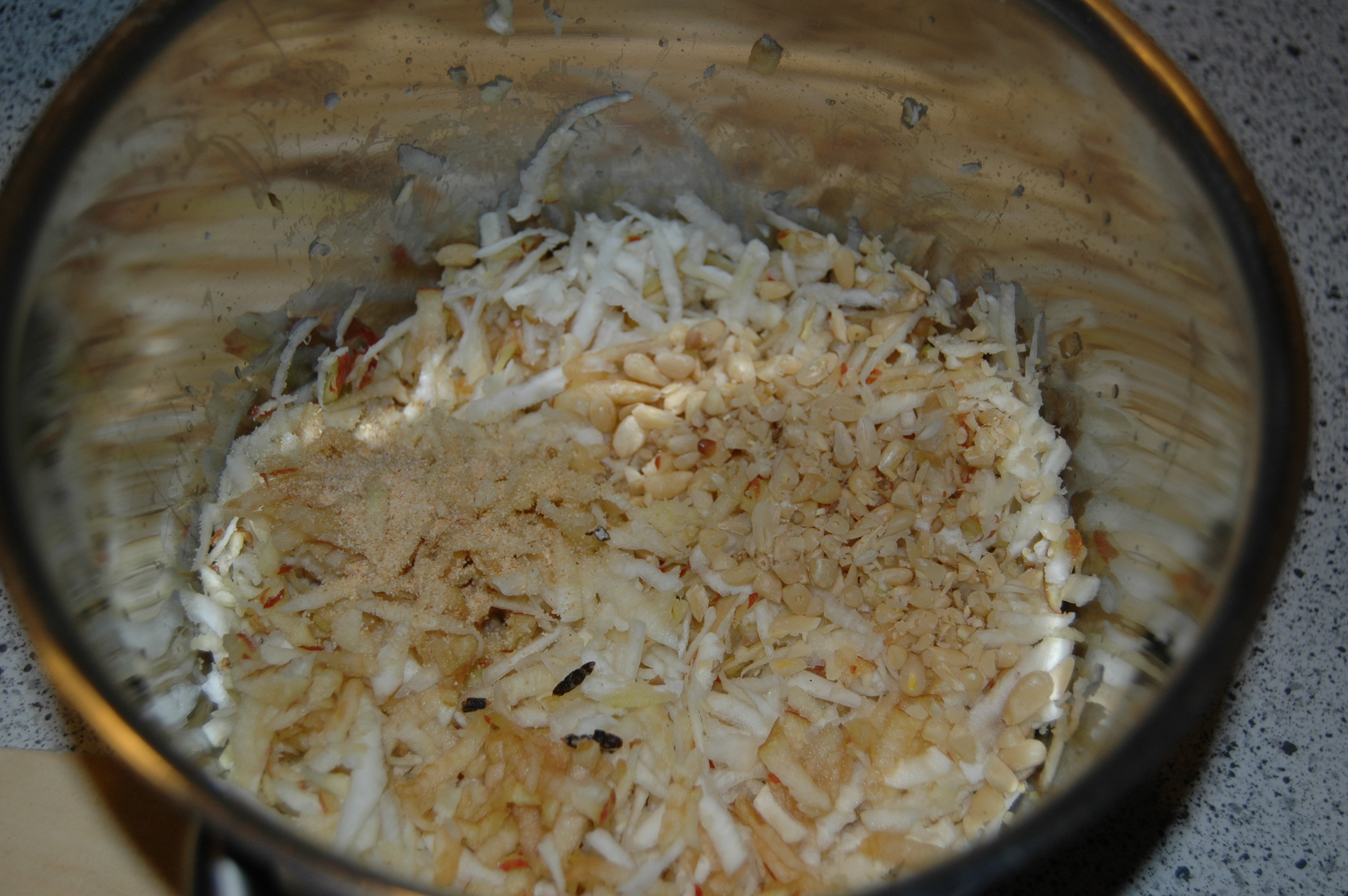 Grate apple and celery into an oven-proof pot. |
