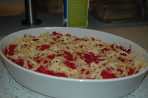 Put the casserole mixture in a greasedoven dish.
