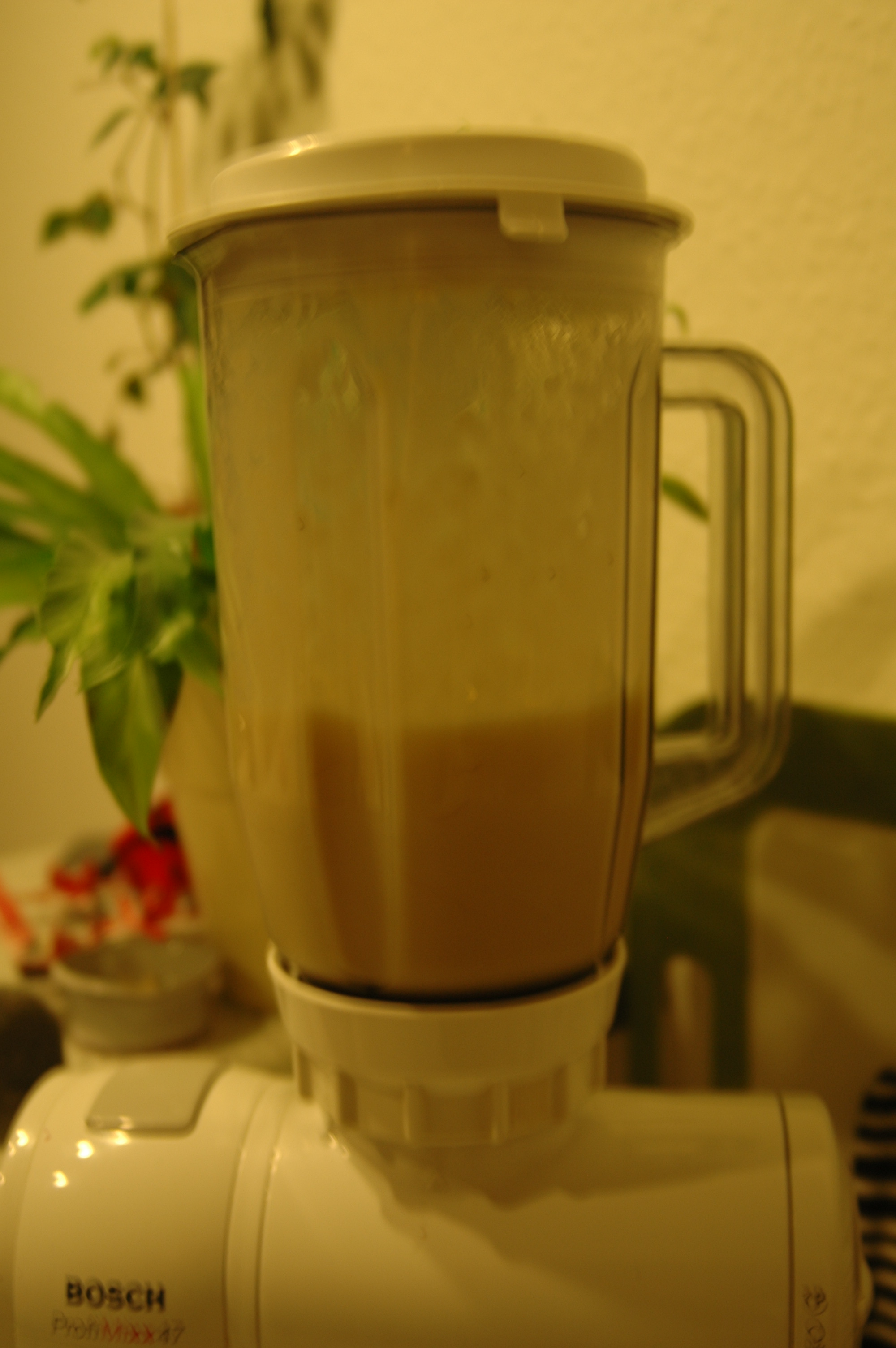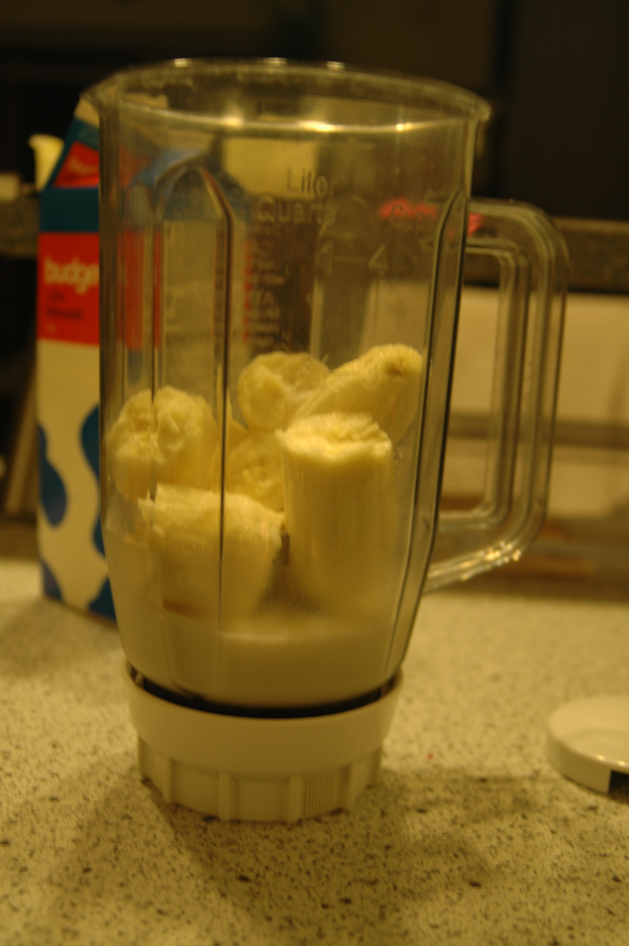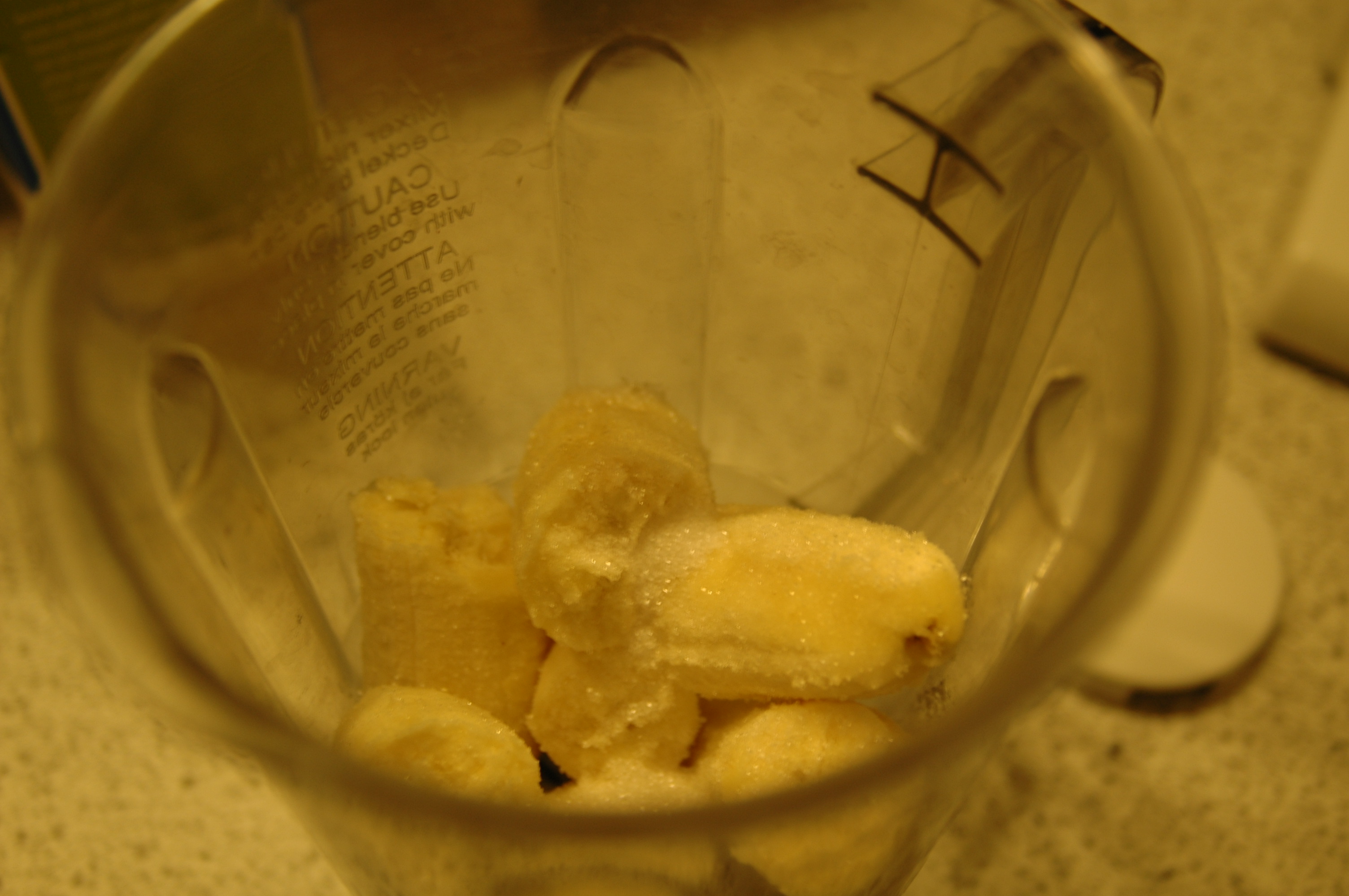 | Peel 2 very ripe bananasand put them piecewise in a blender.Add one tablespoon of vanilla sugar and one tablespoon of cinnamon sugar. | ![]() |