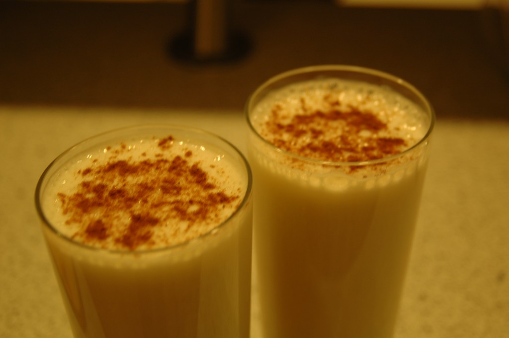 | While blending add two cups of milk.Pure the milkshake in two glasses and decorate with some cinnamon. | ![]() |