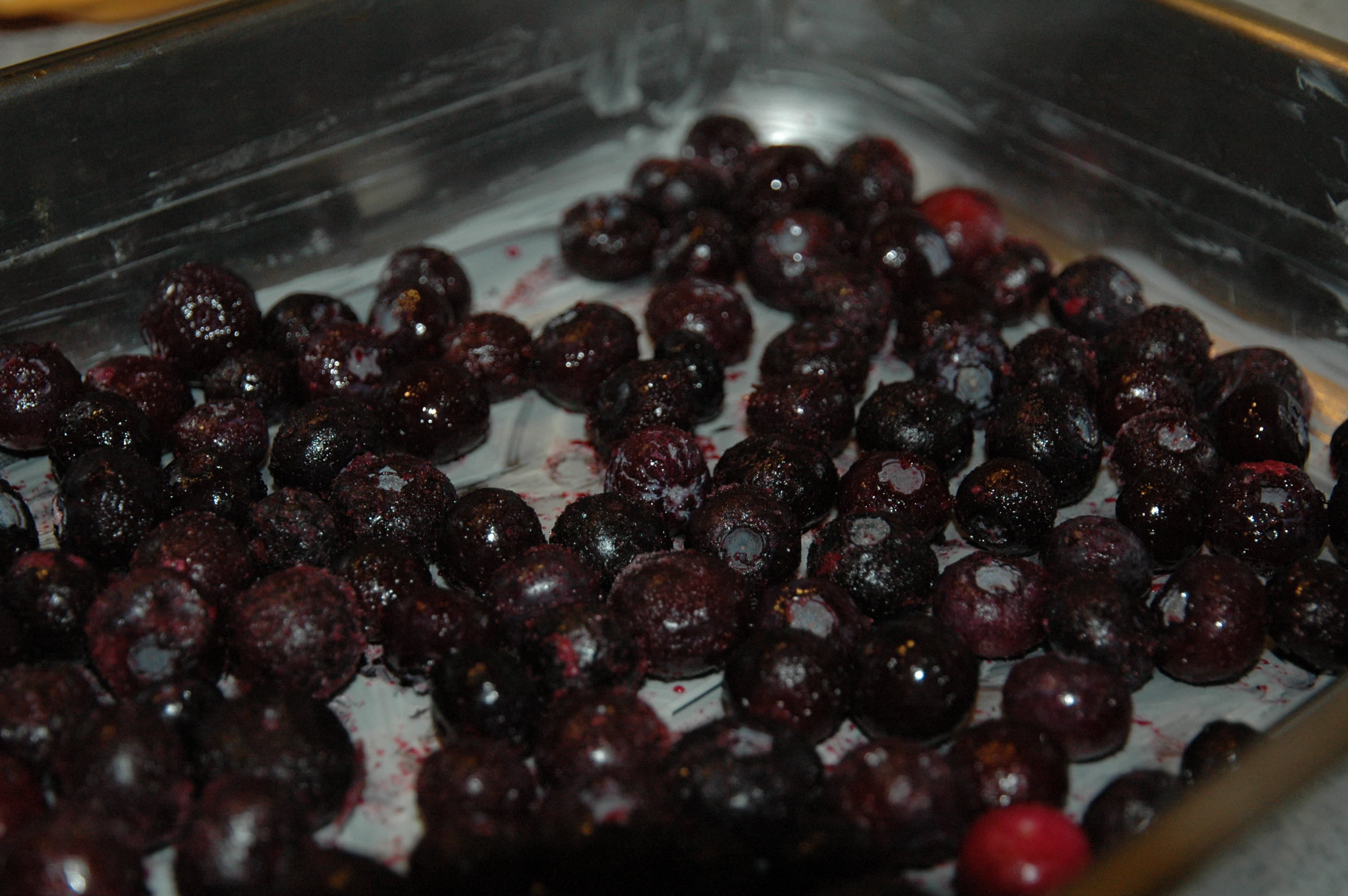 Blueberries Put 300 grams of frozen blueberries in a buttered oven dish.