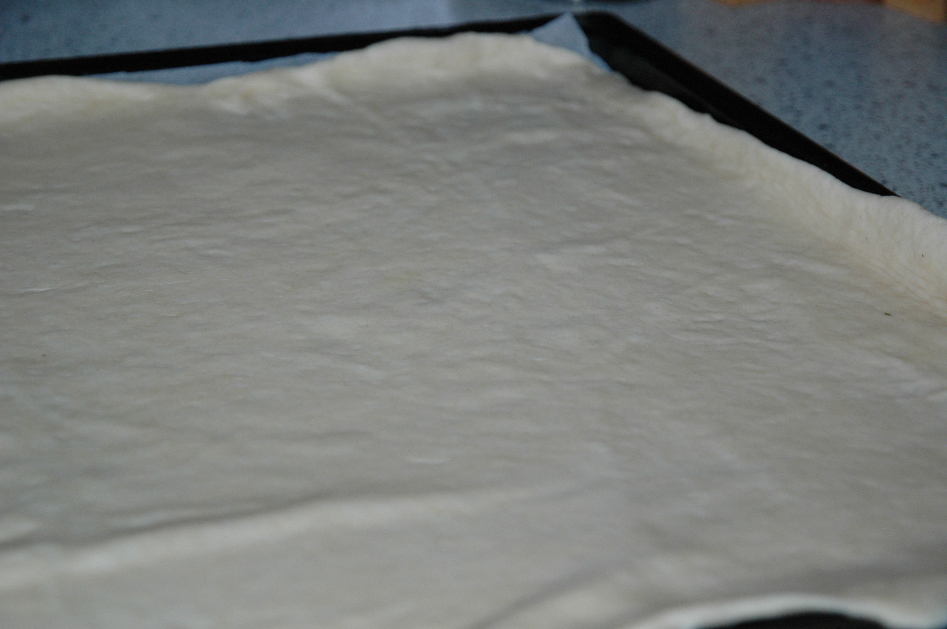Spread the pudding on top of the yeast dough. Pudding Layer