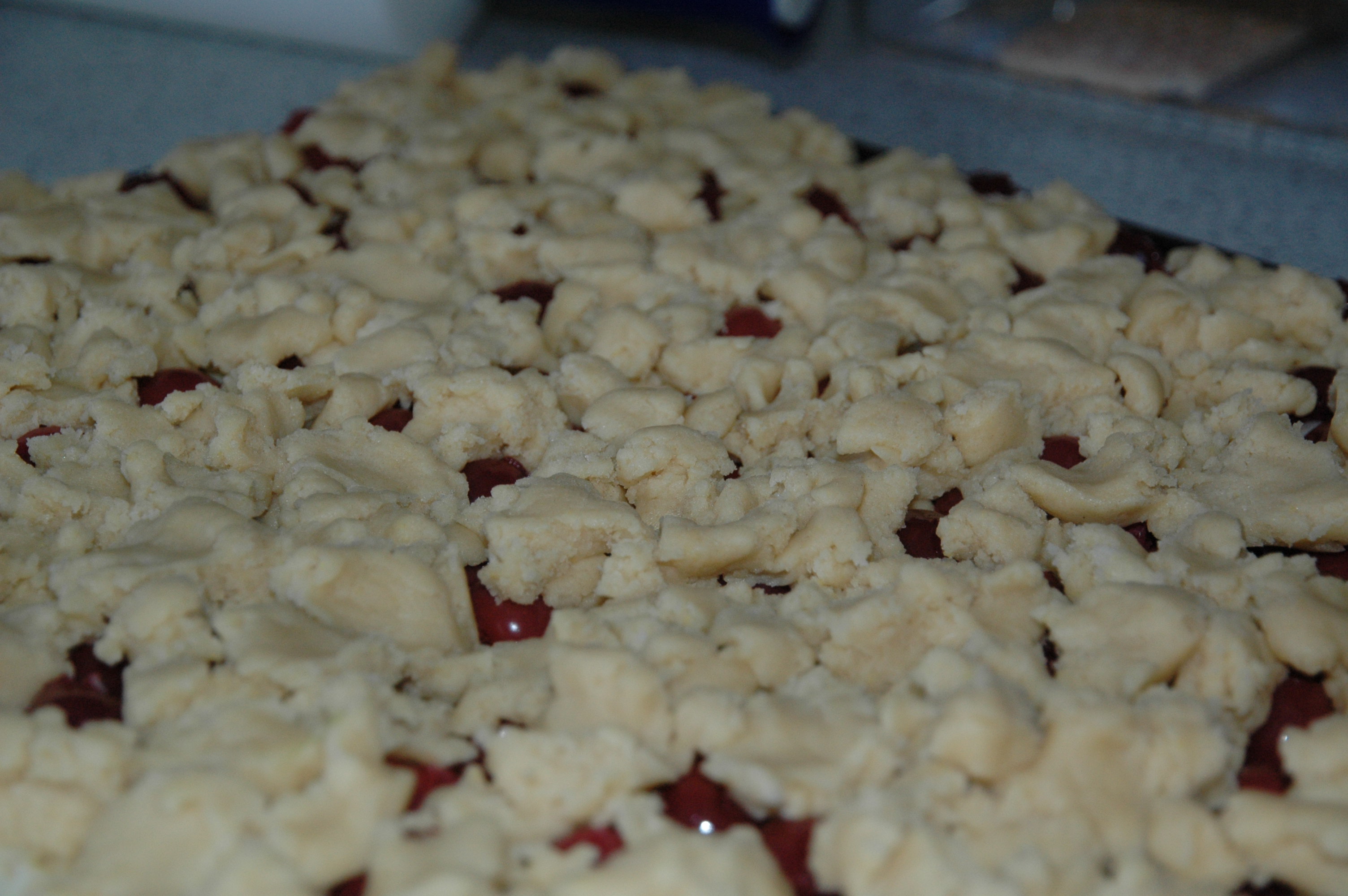 Unbaked Crumble Distribute the crumbles onto the blueberries.