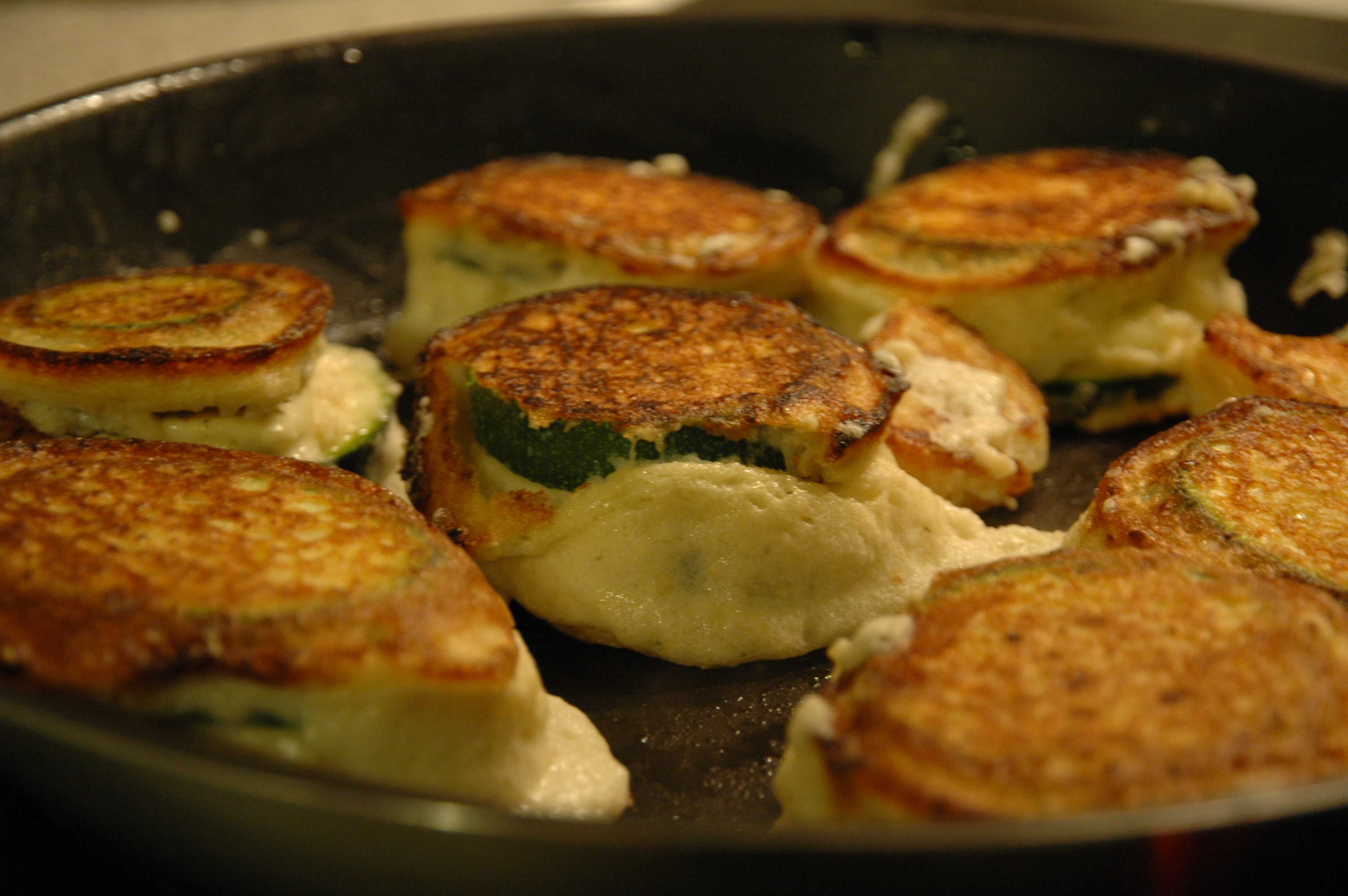 Mozzarella Stuffed Zucchini in Beer Dough Bake the zucchinis from both sides until they are golden.