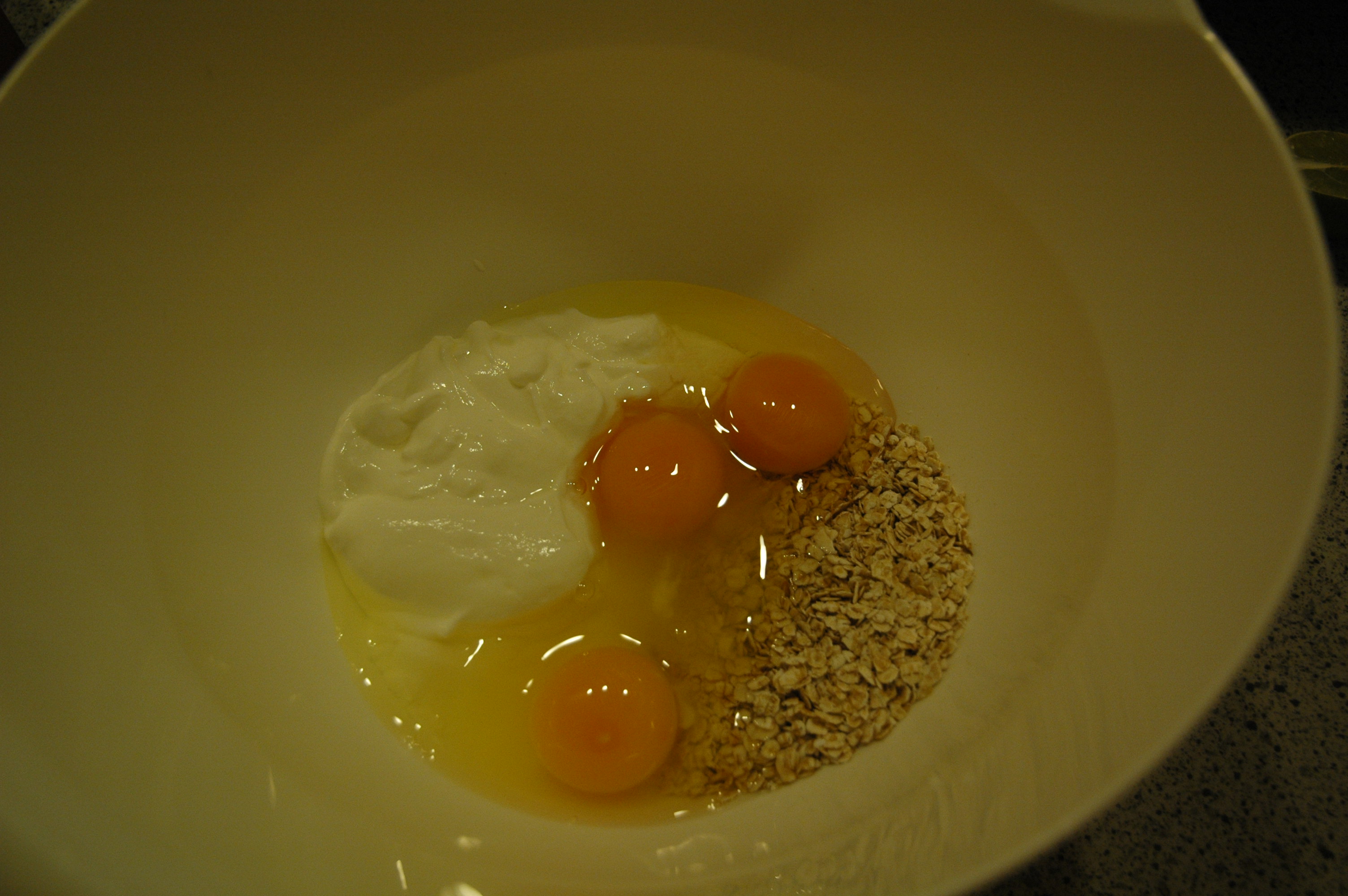 Mix six tablespoons of crème fraîche, six tablespoons of oatmeal and five eggs. Sour Cream, Oatmeal and Eggs