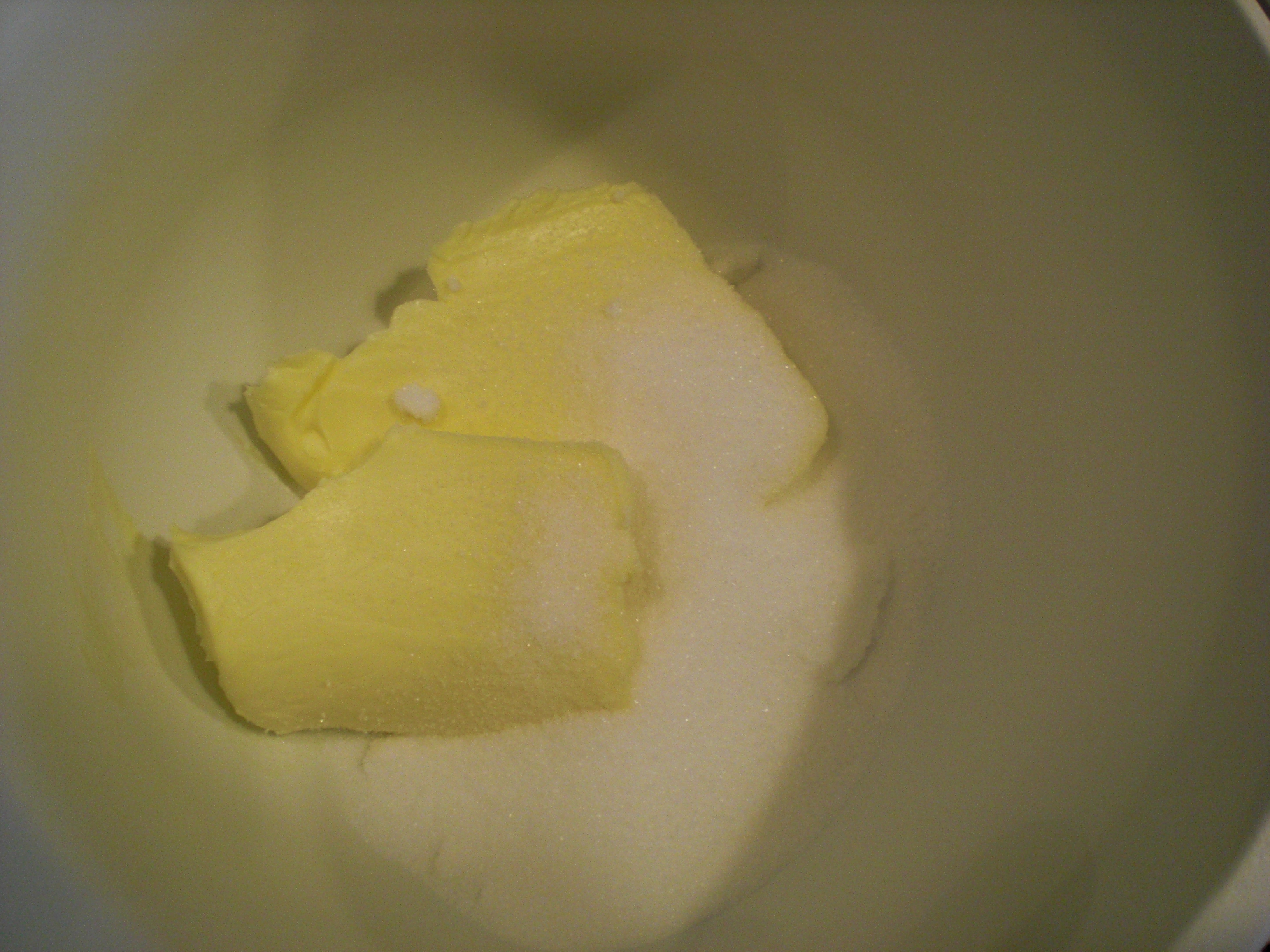 | Whisk 150 grams of margarine and 150 grams of sugar until light and fluffy. |