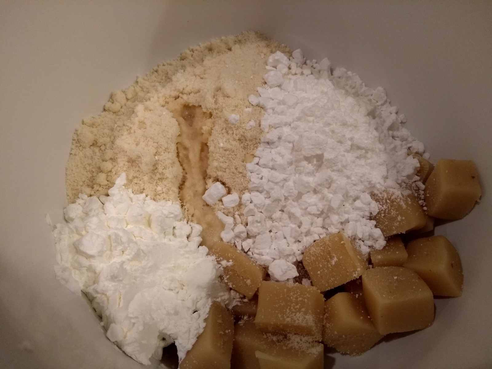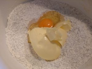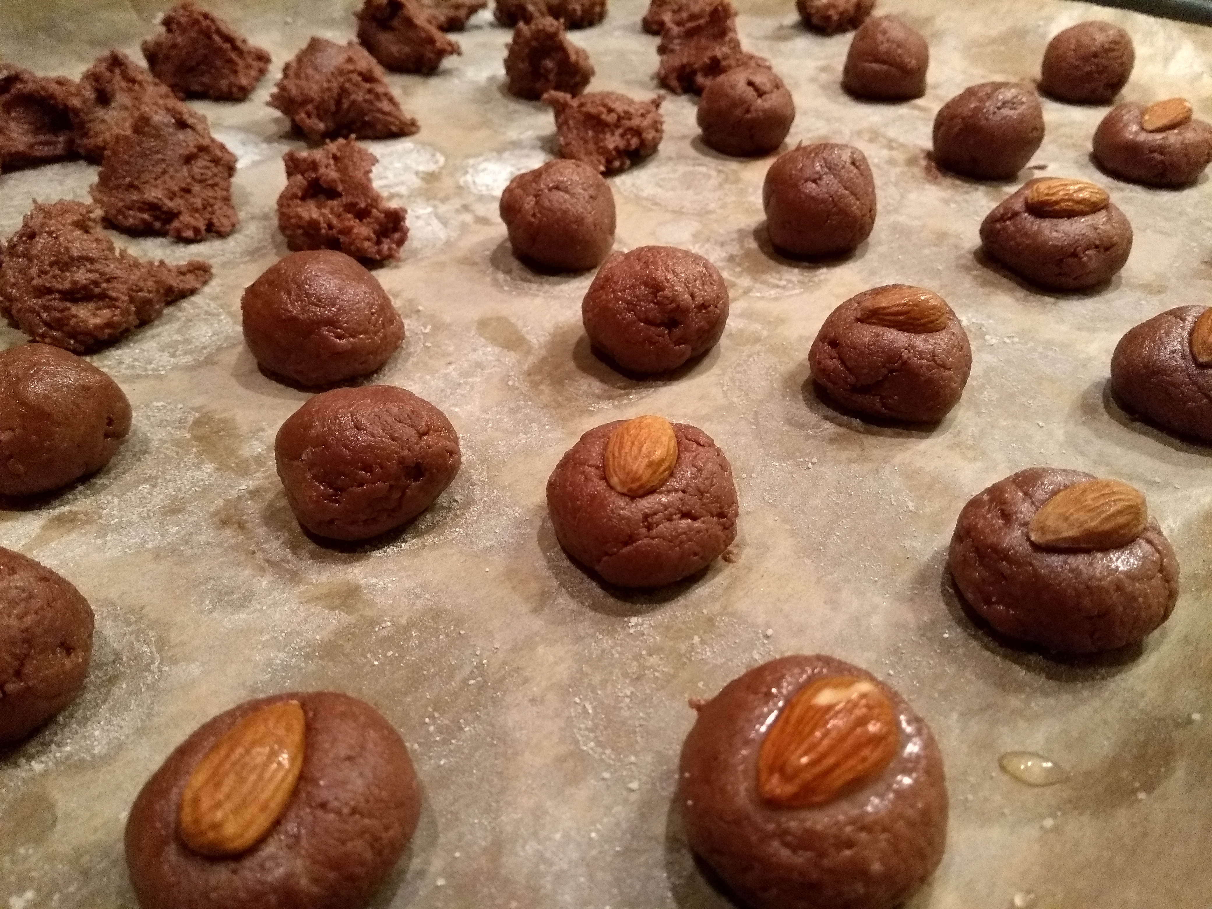 Knead 200 g of marzipan, 150 g of grounded almonds, 75 g of icing sugar, three tablespoons of starch and six tablespoons of orange liqueur into a dough.