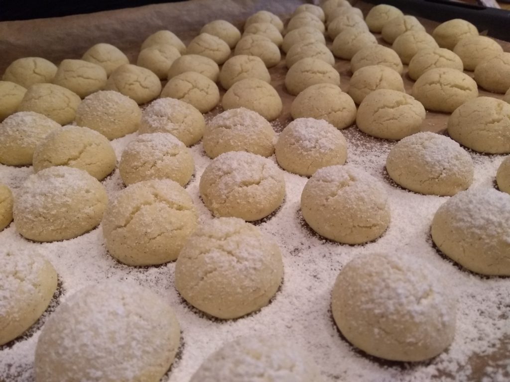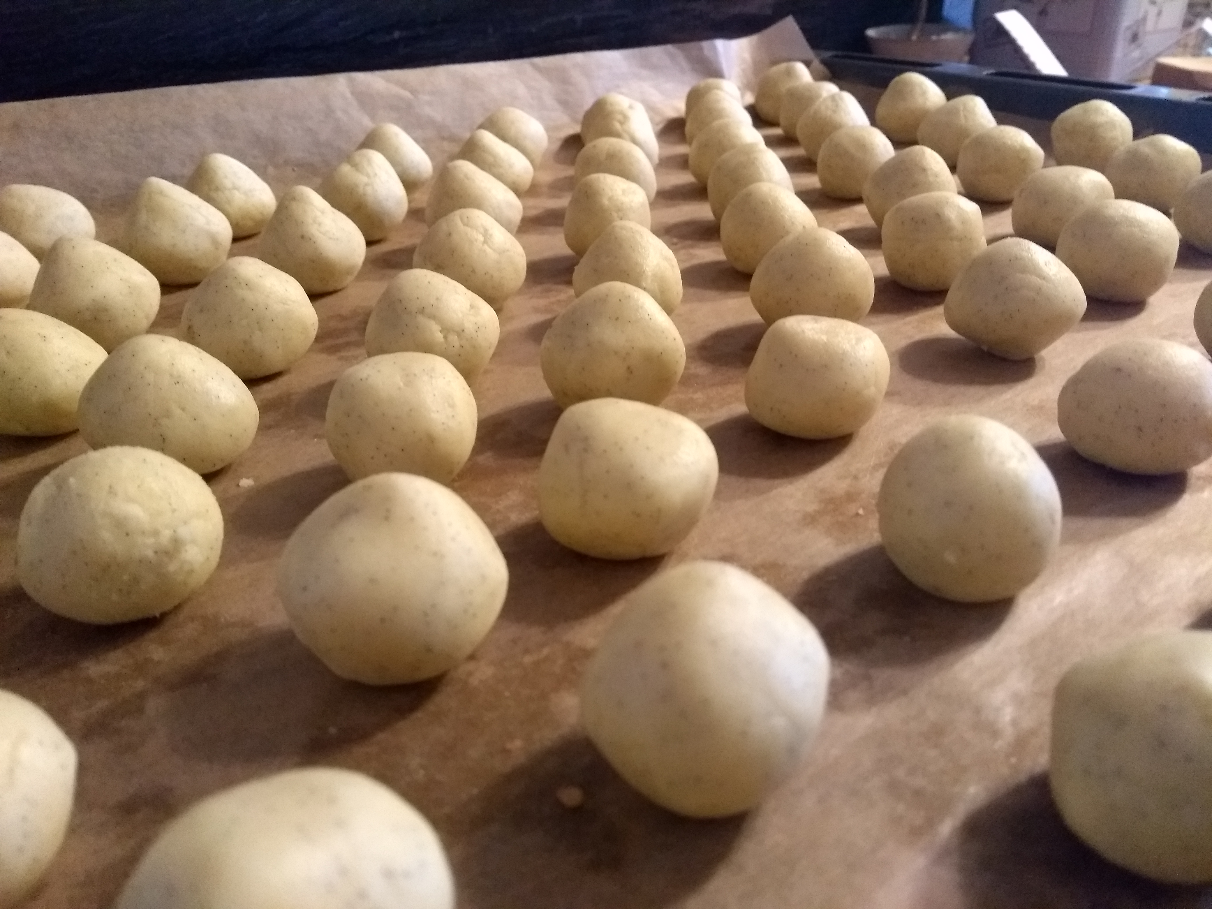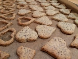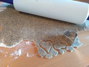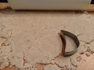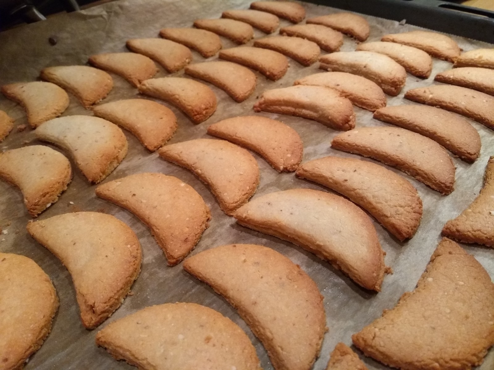 Bake the moons on a baking paper covered baking tray at 175 degrees Celsius for 10 minutes.