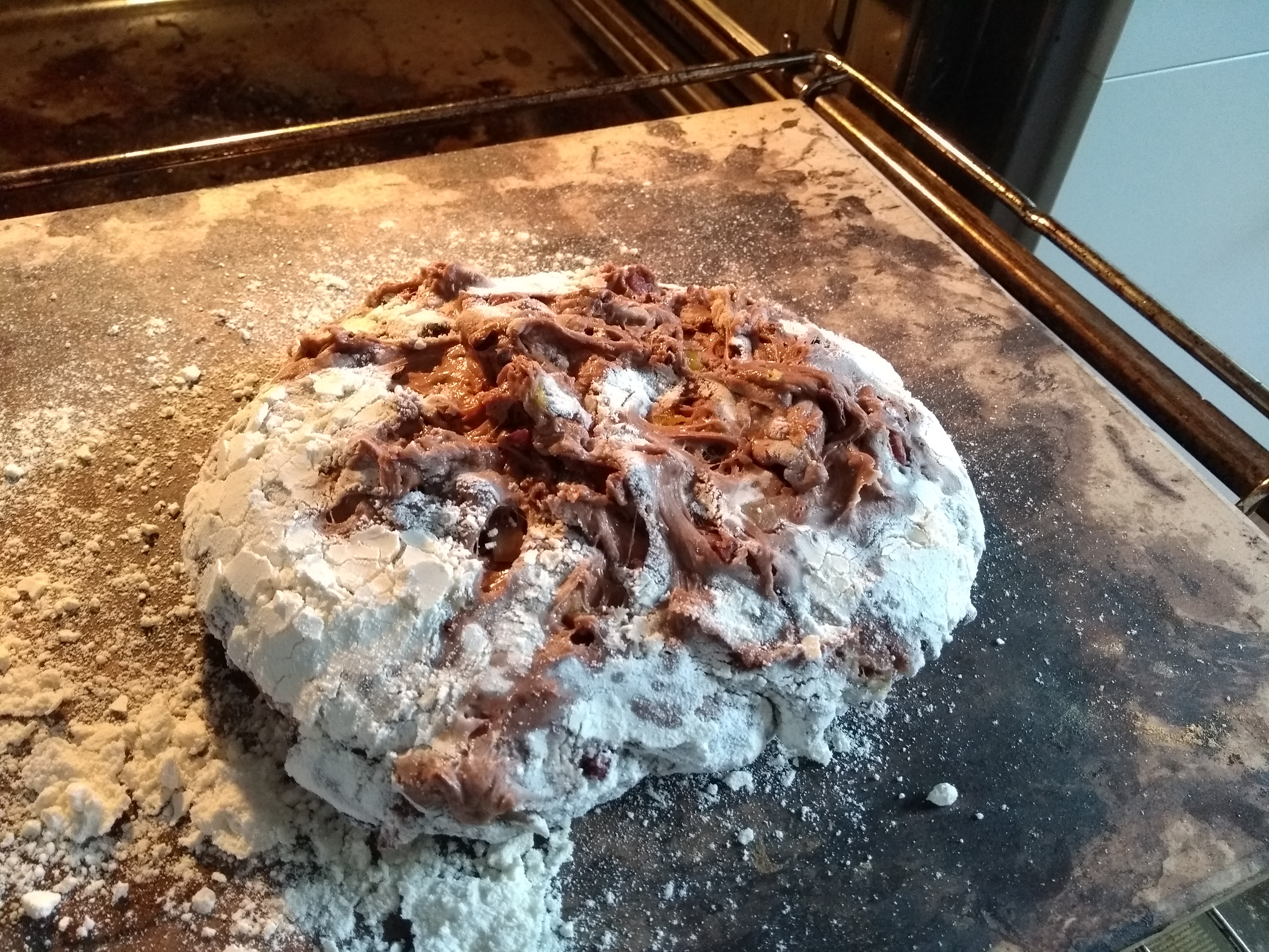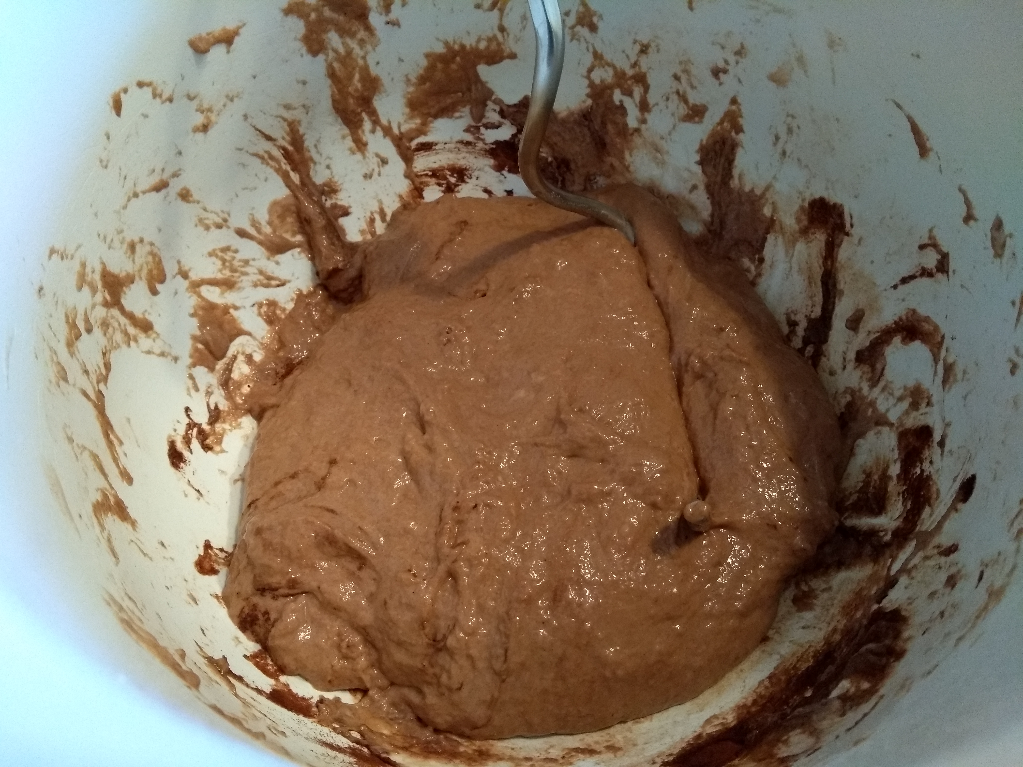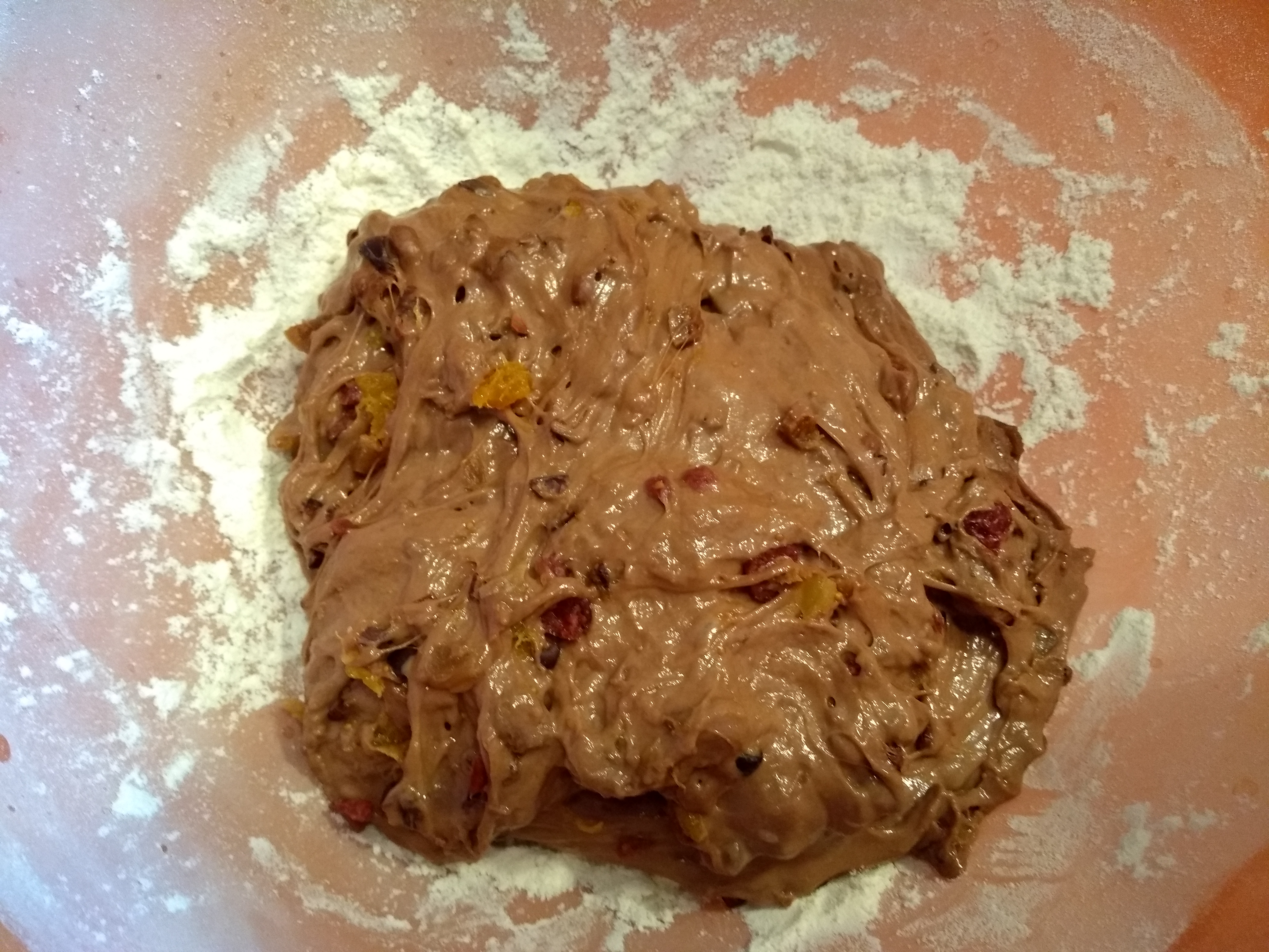 In the meantime, grind two teaspoons of cardamom and mix with 550 g of flour, 60 g of sugar, one pinch of salt and then add the yeast milk. |