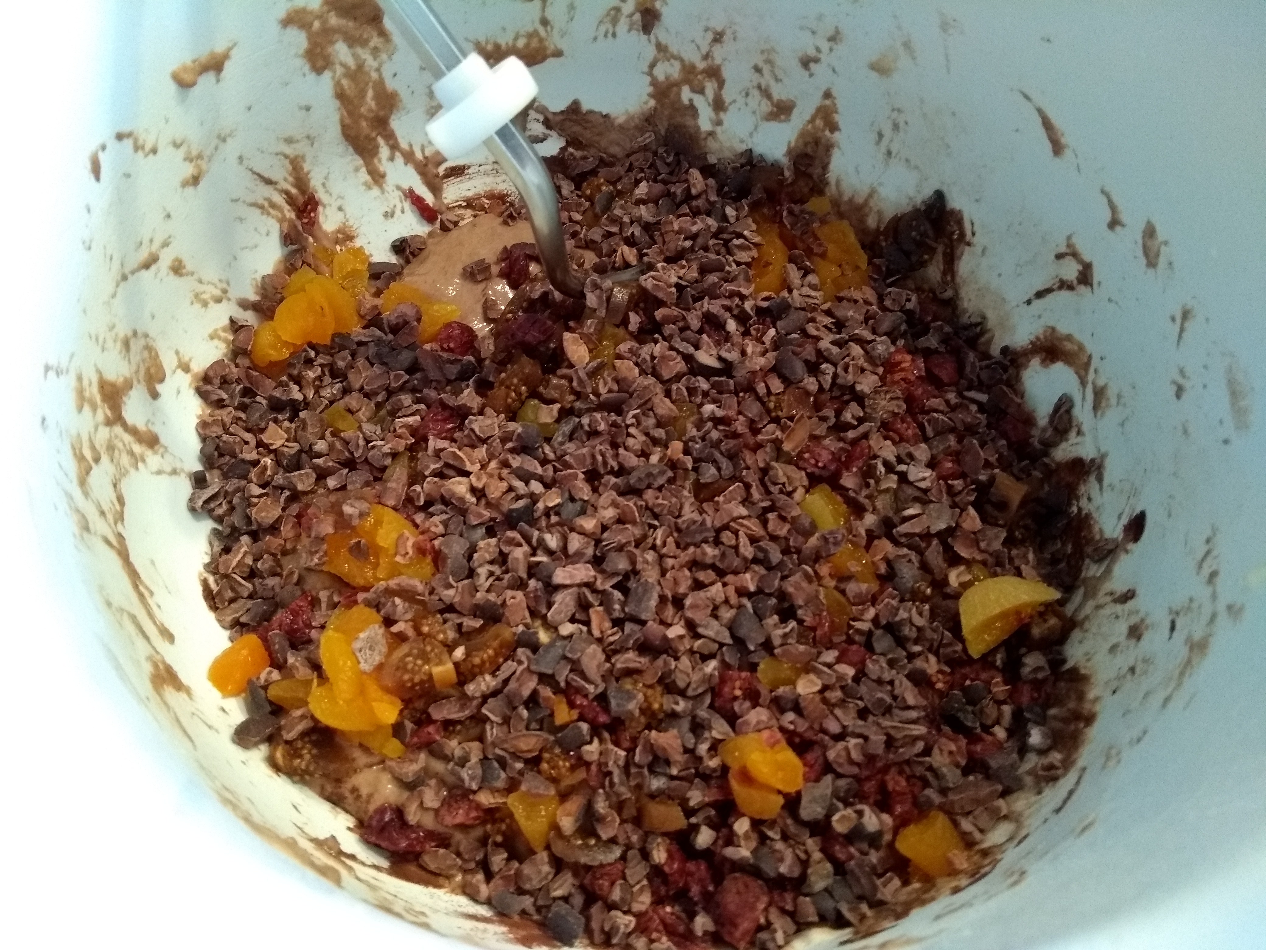 | Add two eggs and 120 g of butter and knead everything to a dough. |