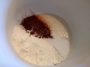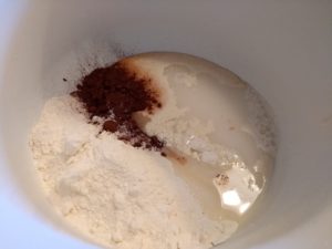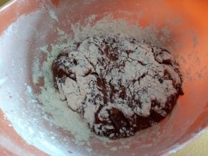 Knead 90 g of sour dough, 160 g of spelled flour, 15 g of sugar, 10 g of cocoa powder and 125 g of water into a dough and let it rest for 30 minutes.