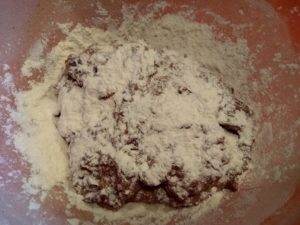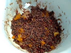 Knead the diced fruits and 40 g of cocoa nibs into the dough.