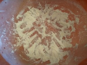 Dust a mold with flour, put in the dough and dust with flour from above. Let the bread rest for 12 hours in the refrigerator.