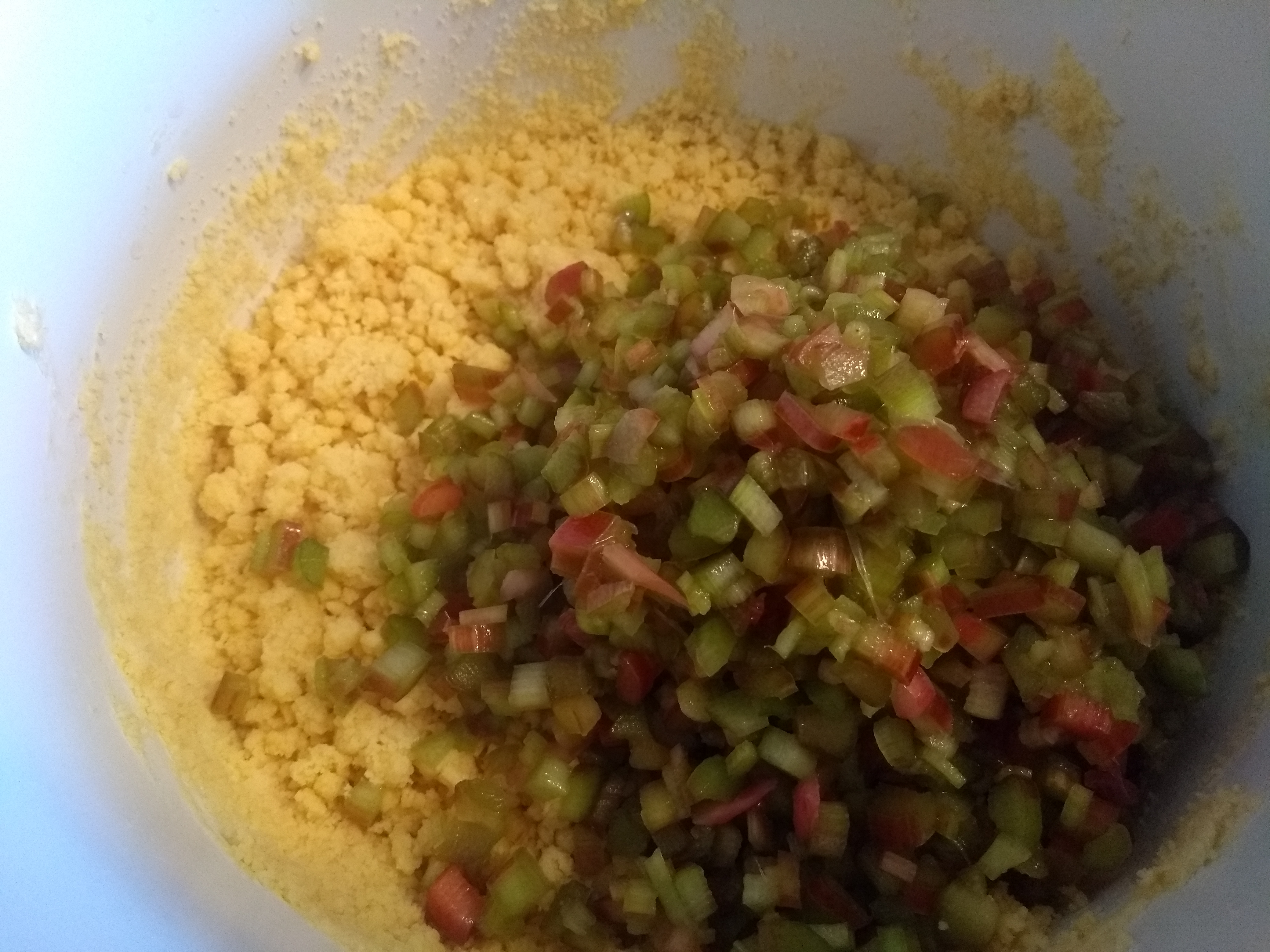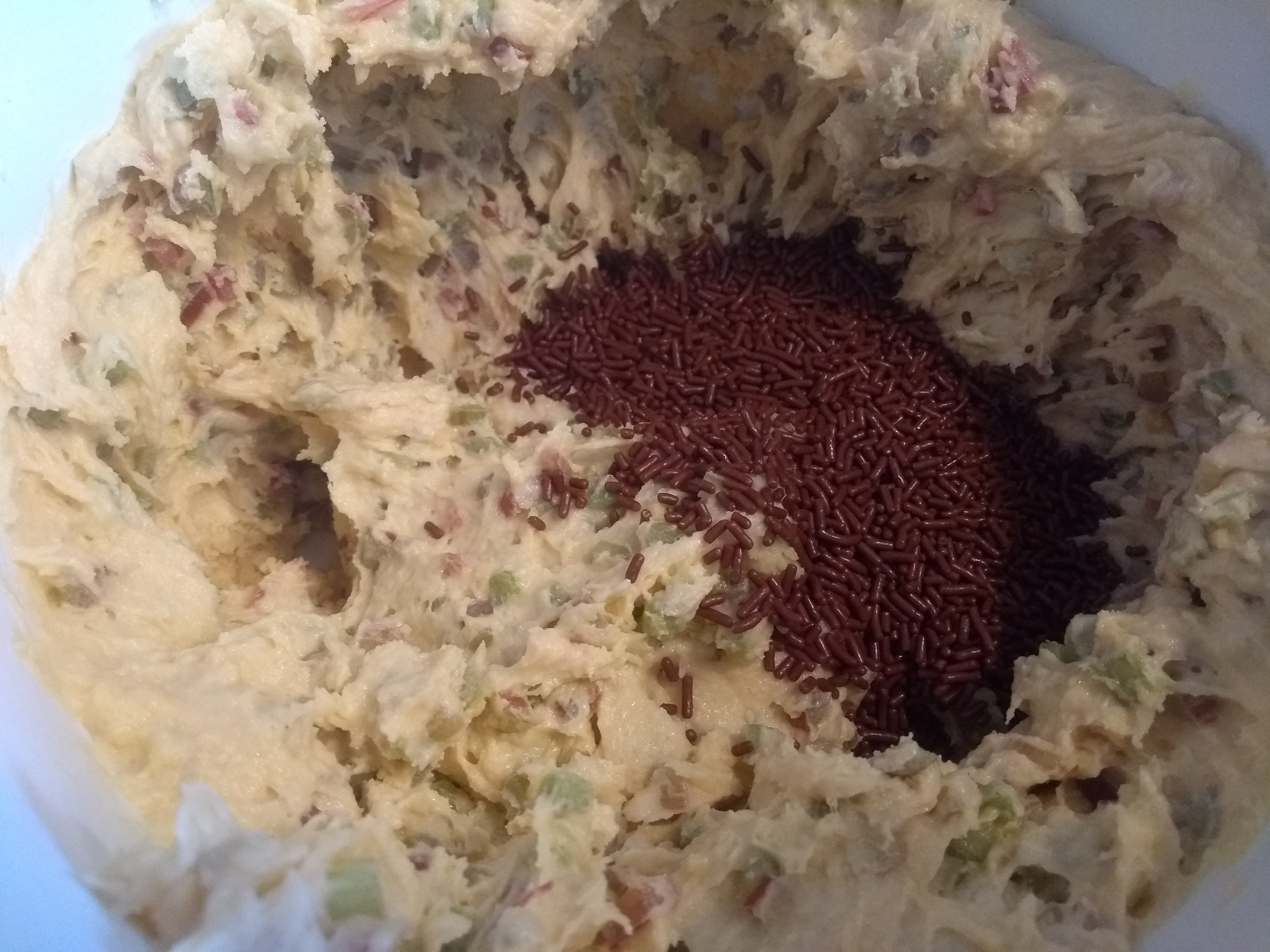 Peel 400 g of rhubarb and cut into small cubes.  rhubarb2