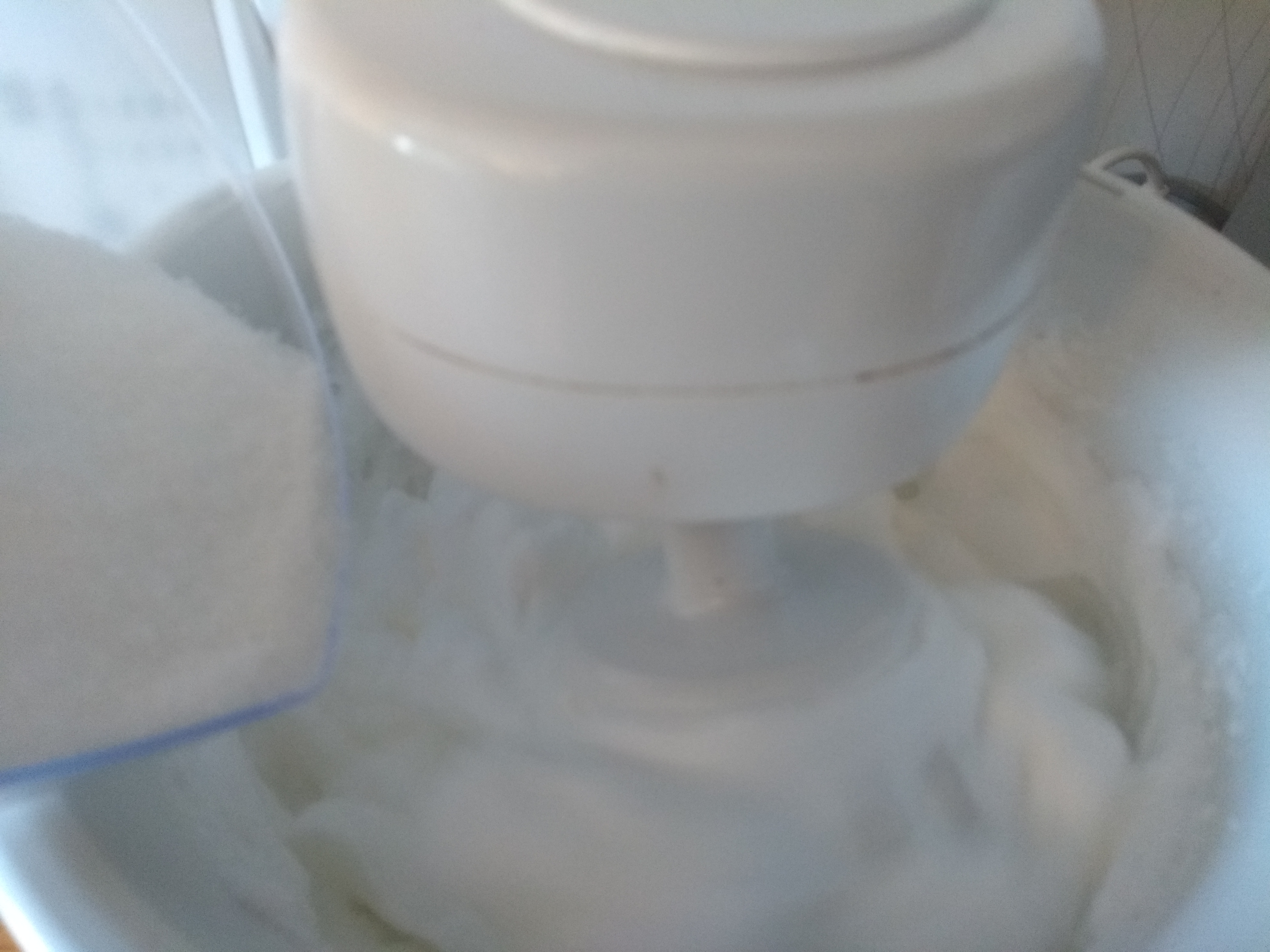 baiser Whisk 5 egg whites with 100 g of sugar until foamy.