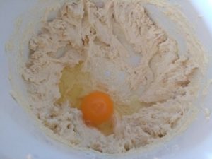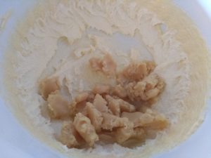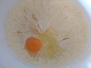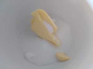 rhubarb10 Stir 150 g of butter with 75 g of sugar until fluffy.