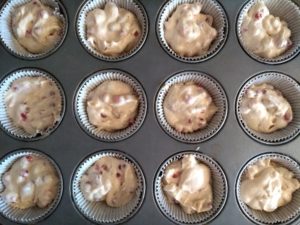 Pour batter into 24 cupcakes and bake for 15 minutes at 180 degrees Celsius. dough