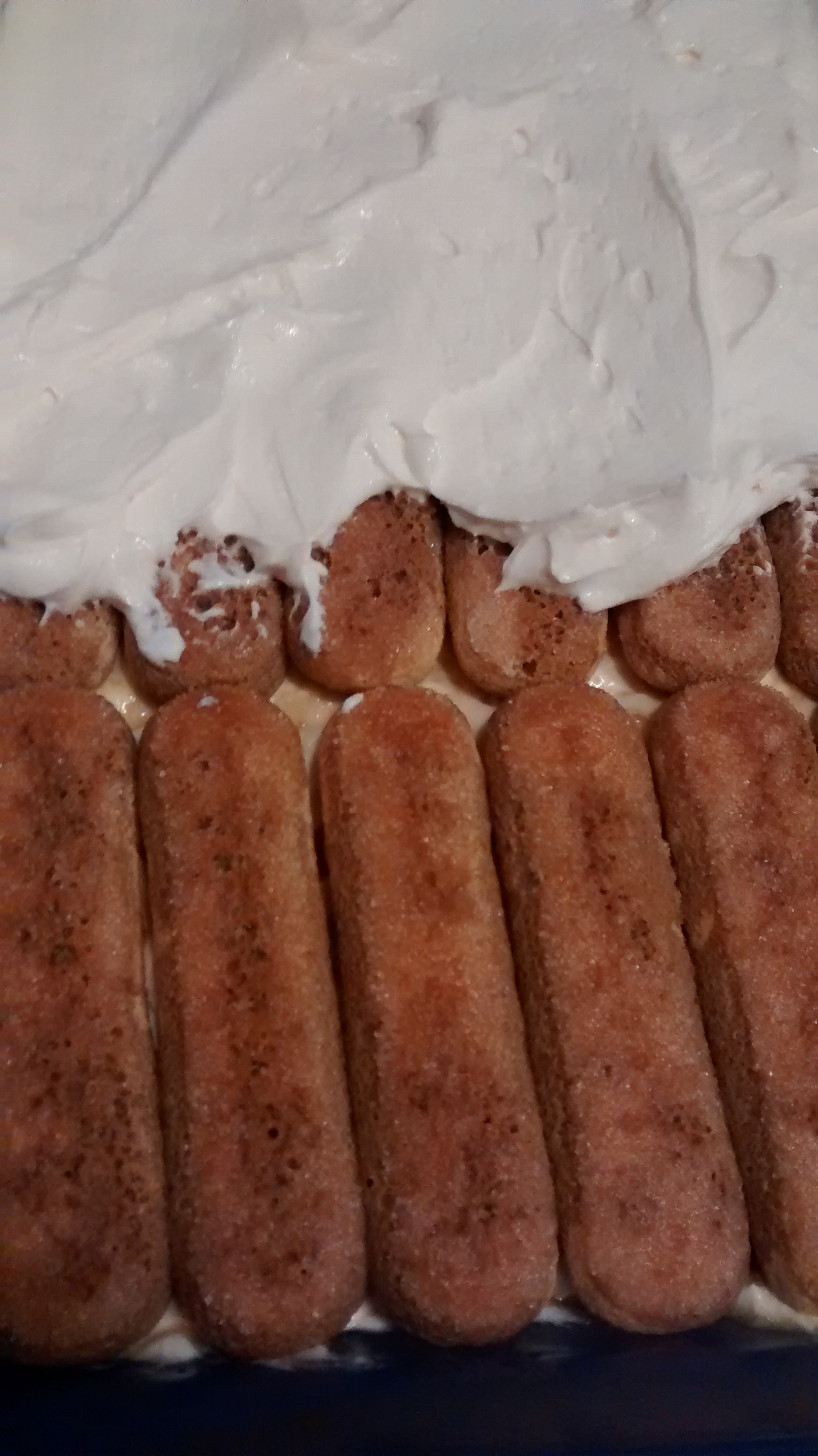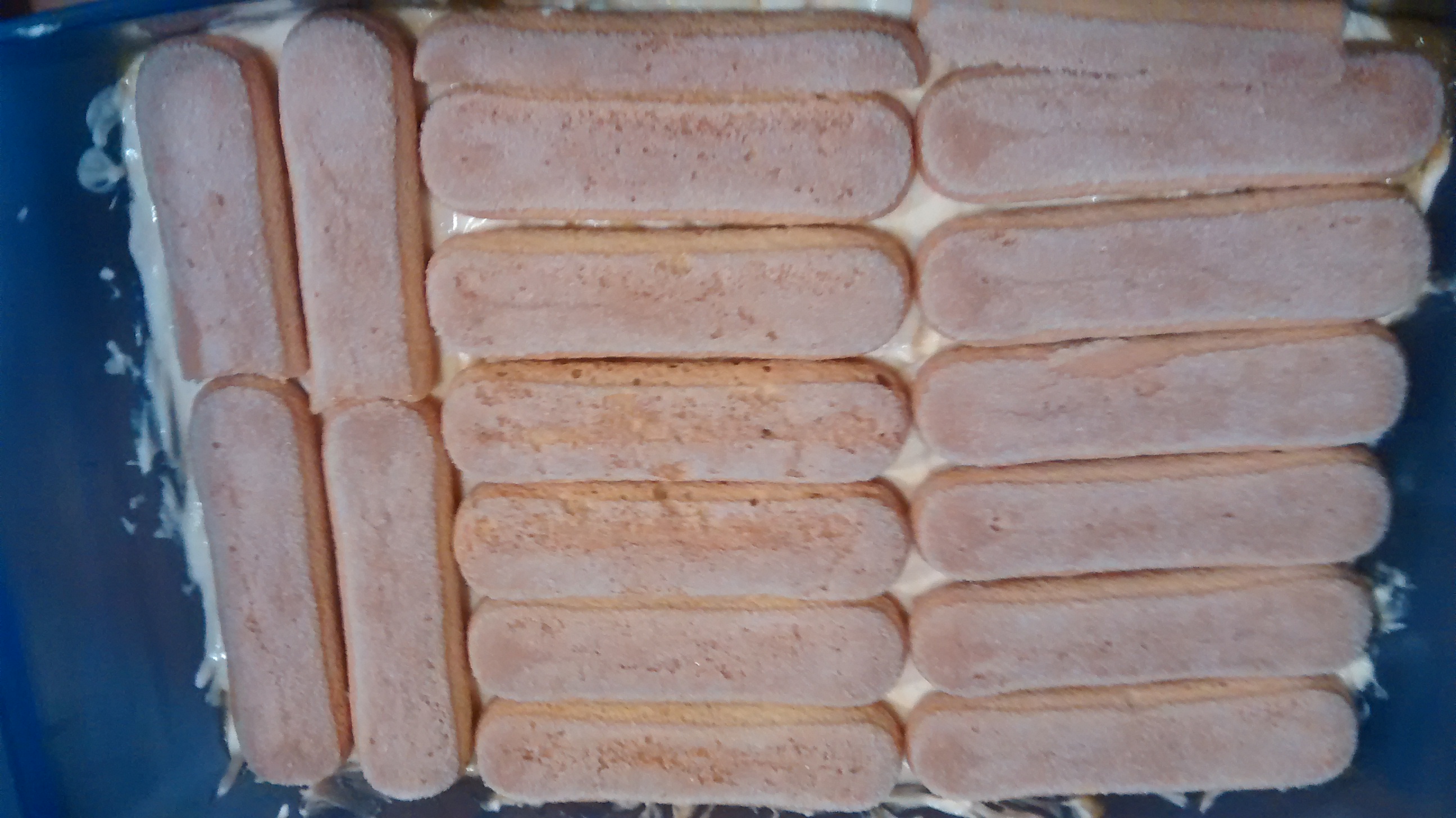 coffee  Put one cup of coffee in a deep plate. Dip 250 grams of ladyfingers in the coffee.