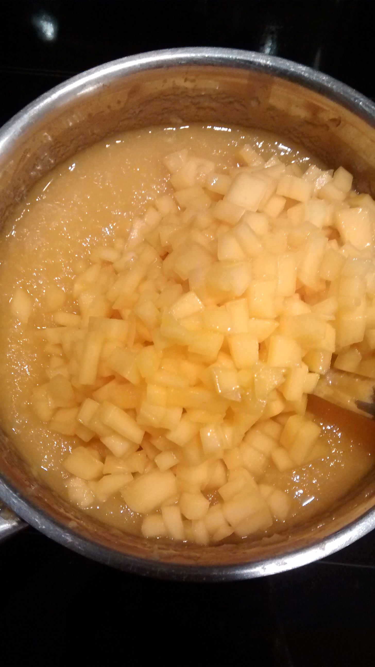 Stir in one soaked sheet of gelatin, 2 tablespoons of orange liqueur, the mango puree and the mango dices. gelantine