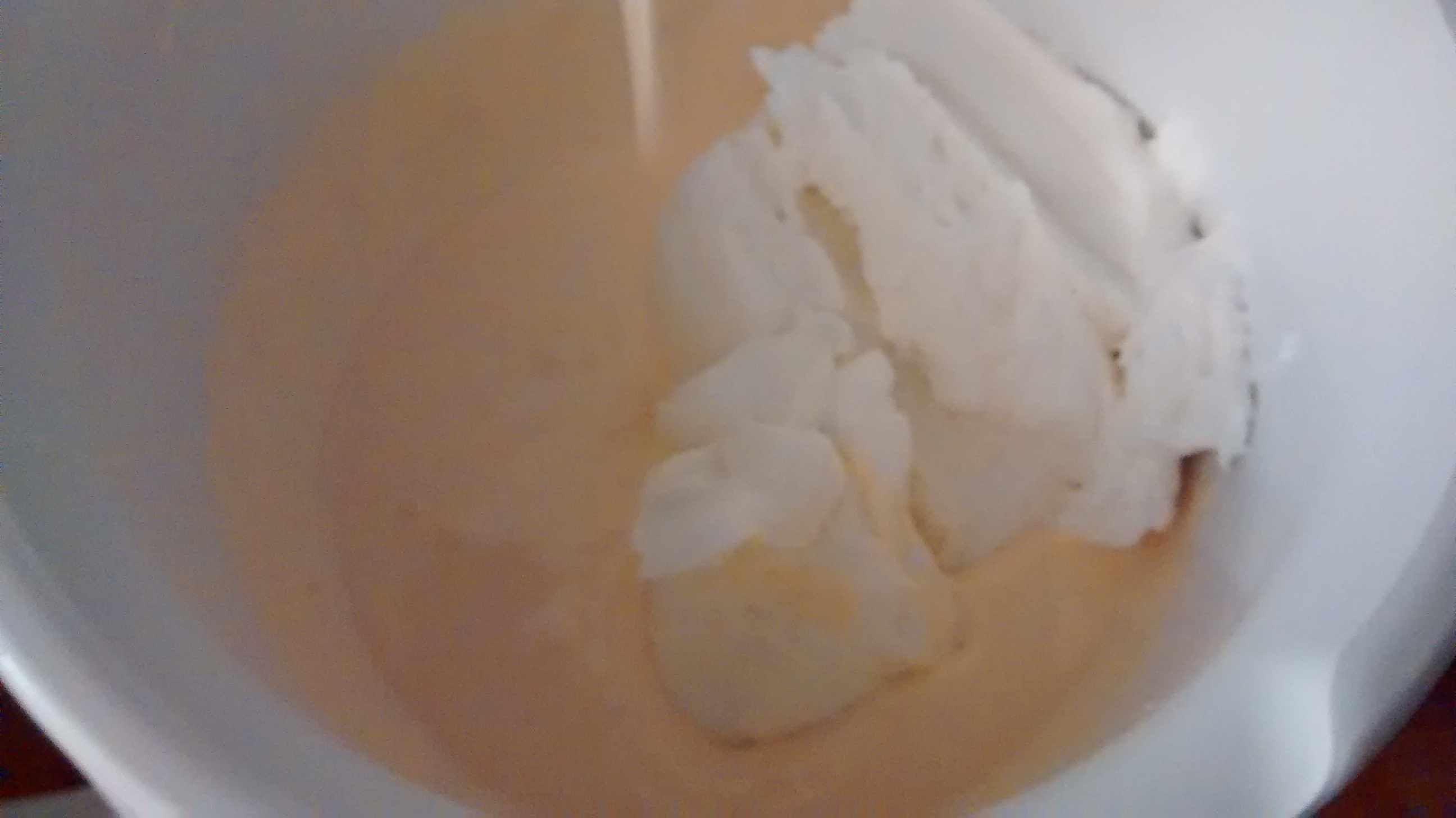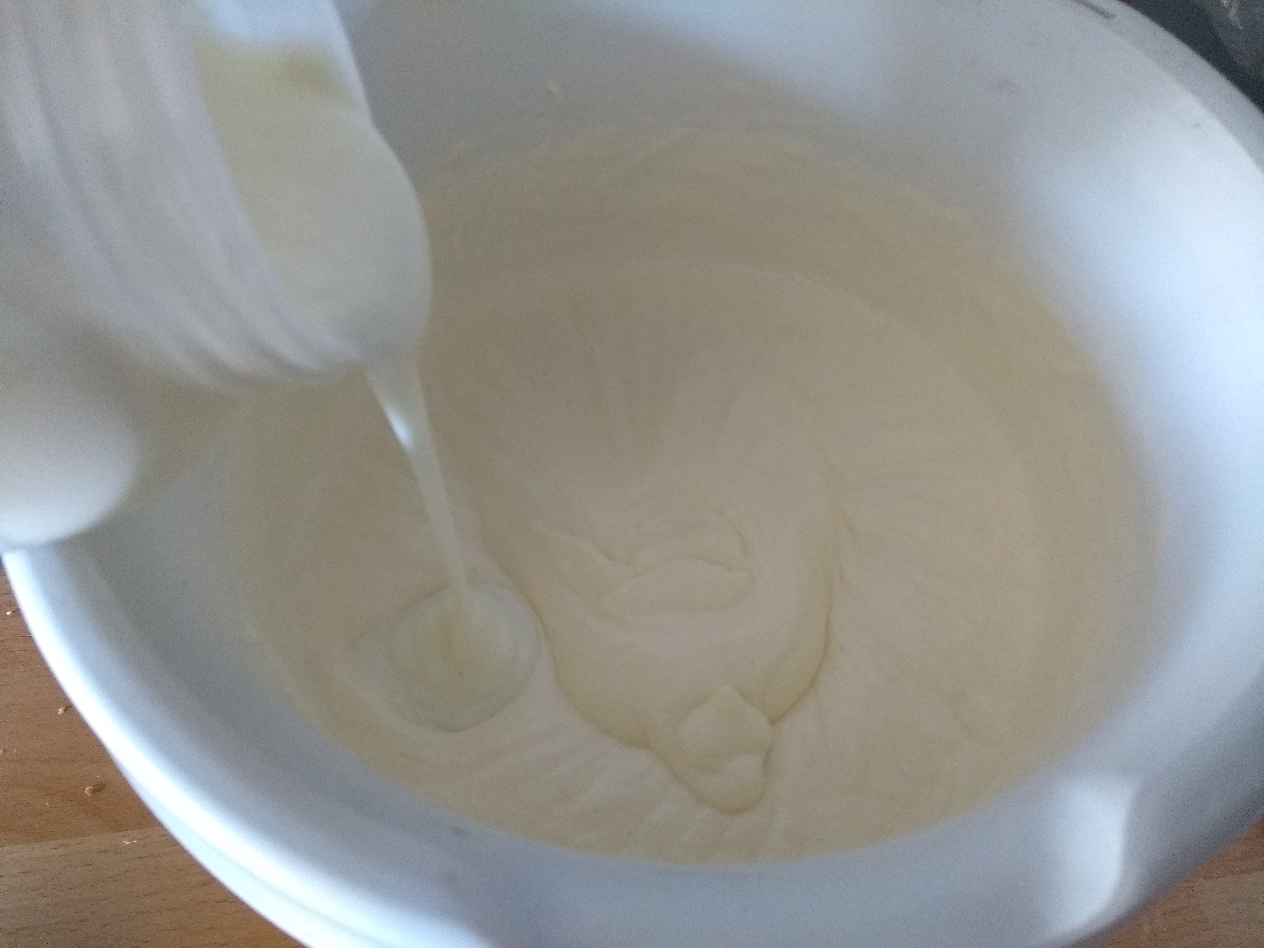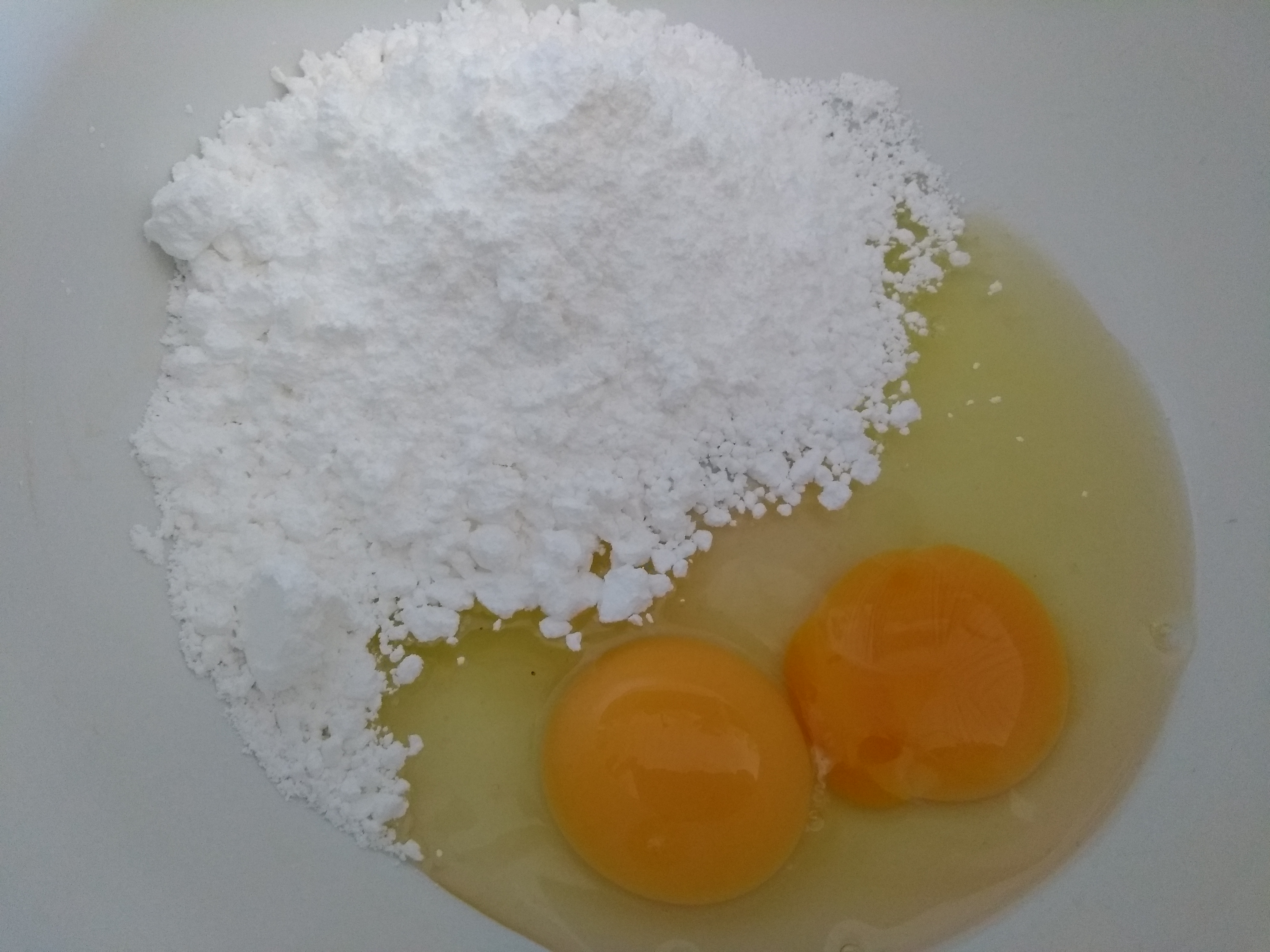 egg_white_and_sugar Whisk 4 egg whites and 25 grams of white sugar until stiff.