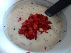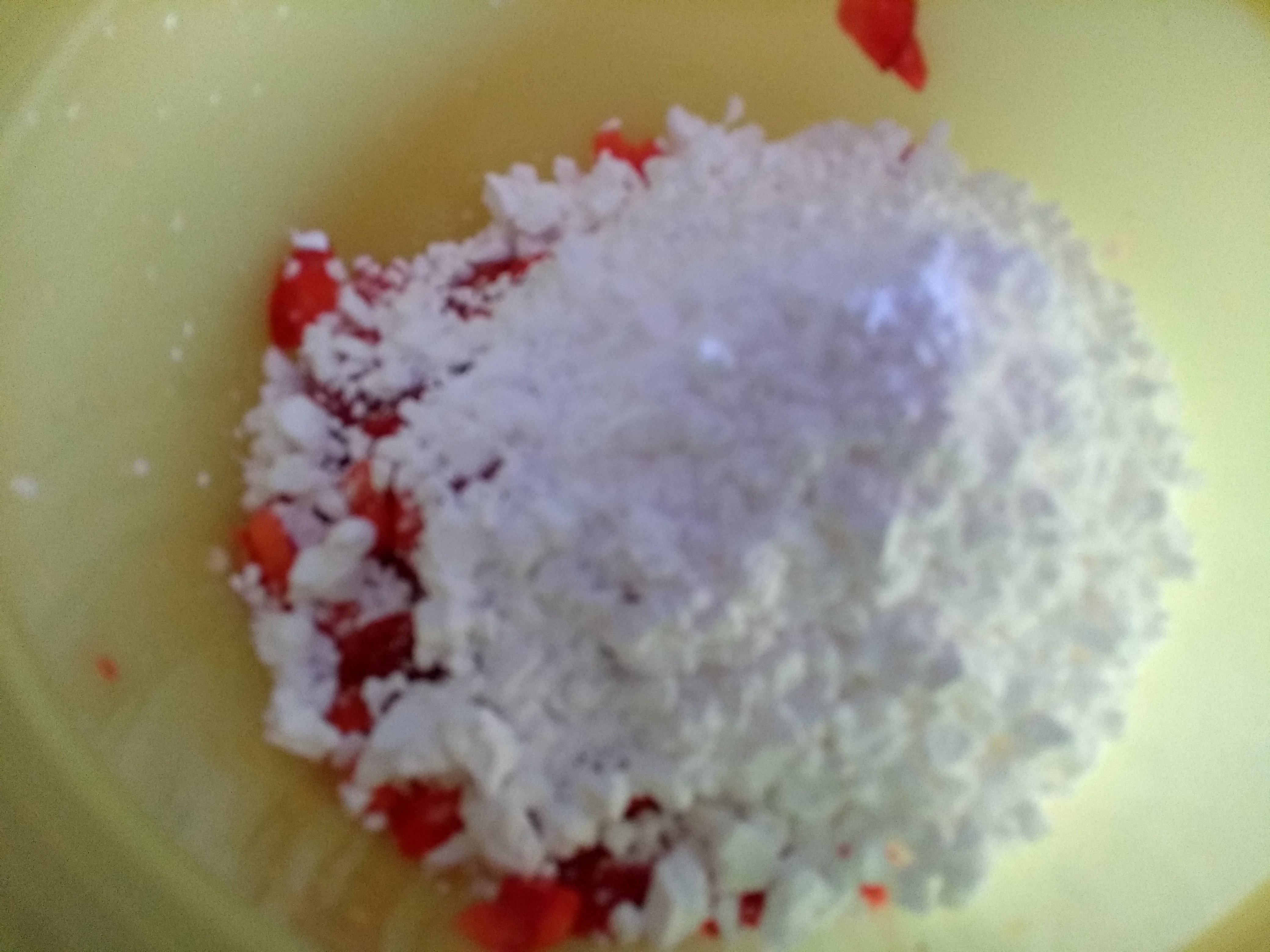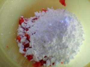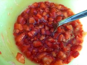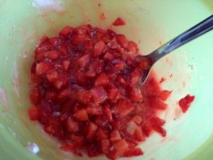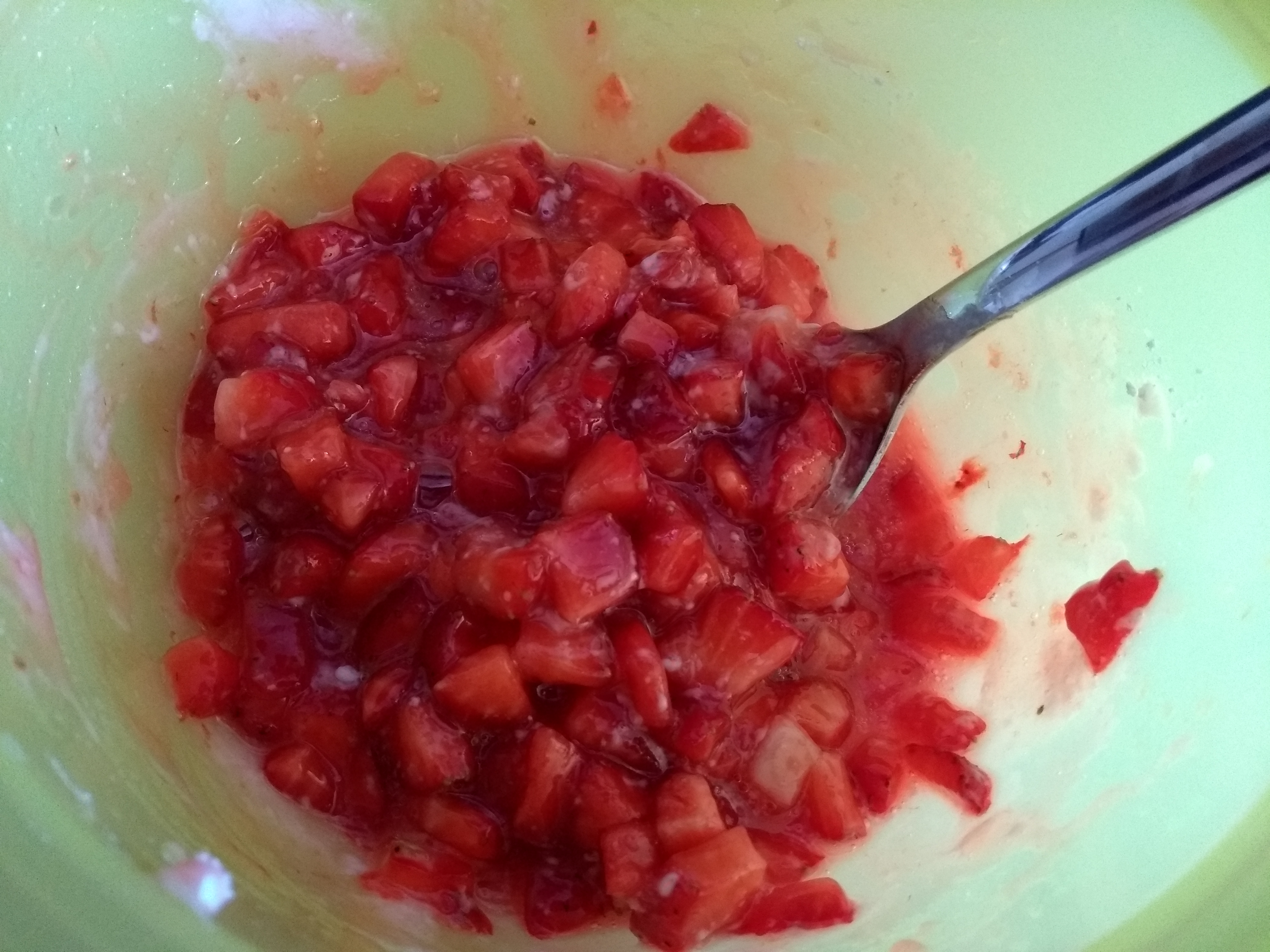 Wash 250 g of strawberries, dice them, mix them with one cup of icing sugar and place them in the fridge over night.