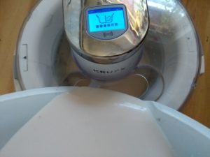Bring three cups of milk, one cup of cream, one cup of sugar and one pinch of salt to a boil.