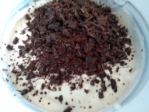 Allow to cool down and fold in two tablespoons of orange liqueur and two cups of whipped cream.