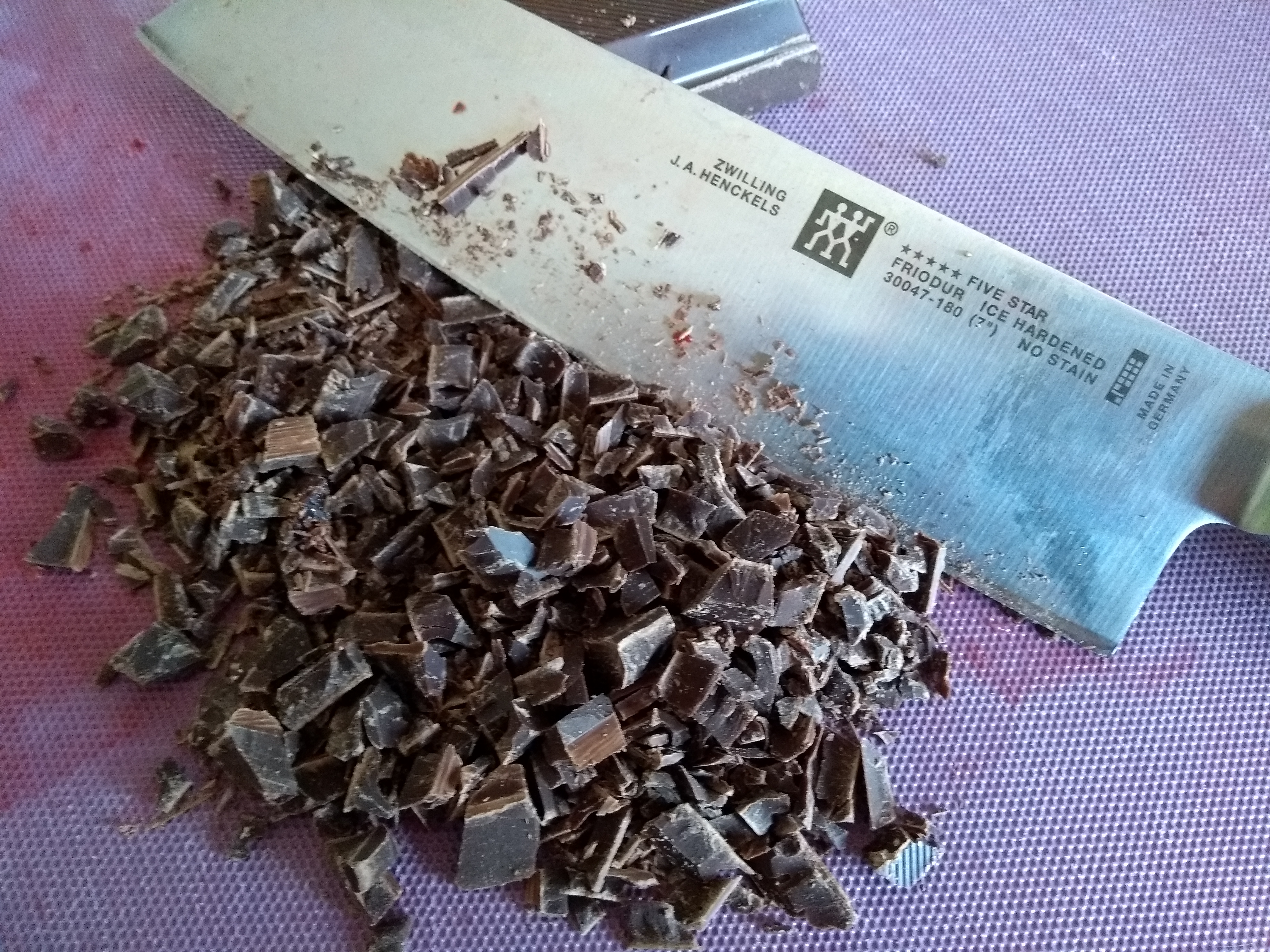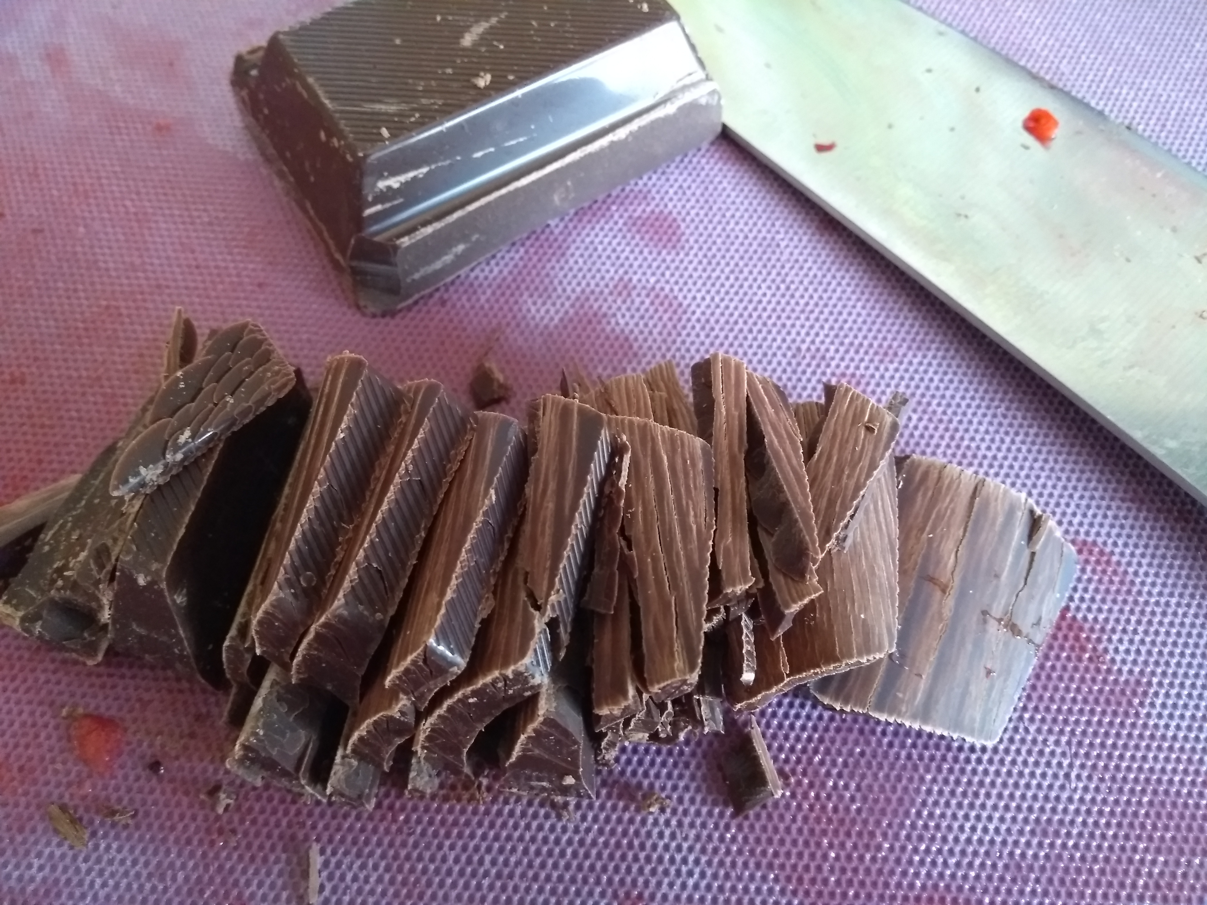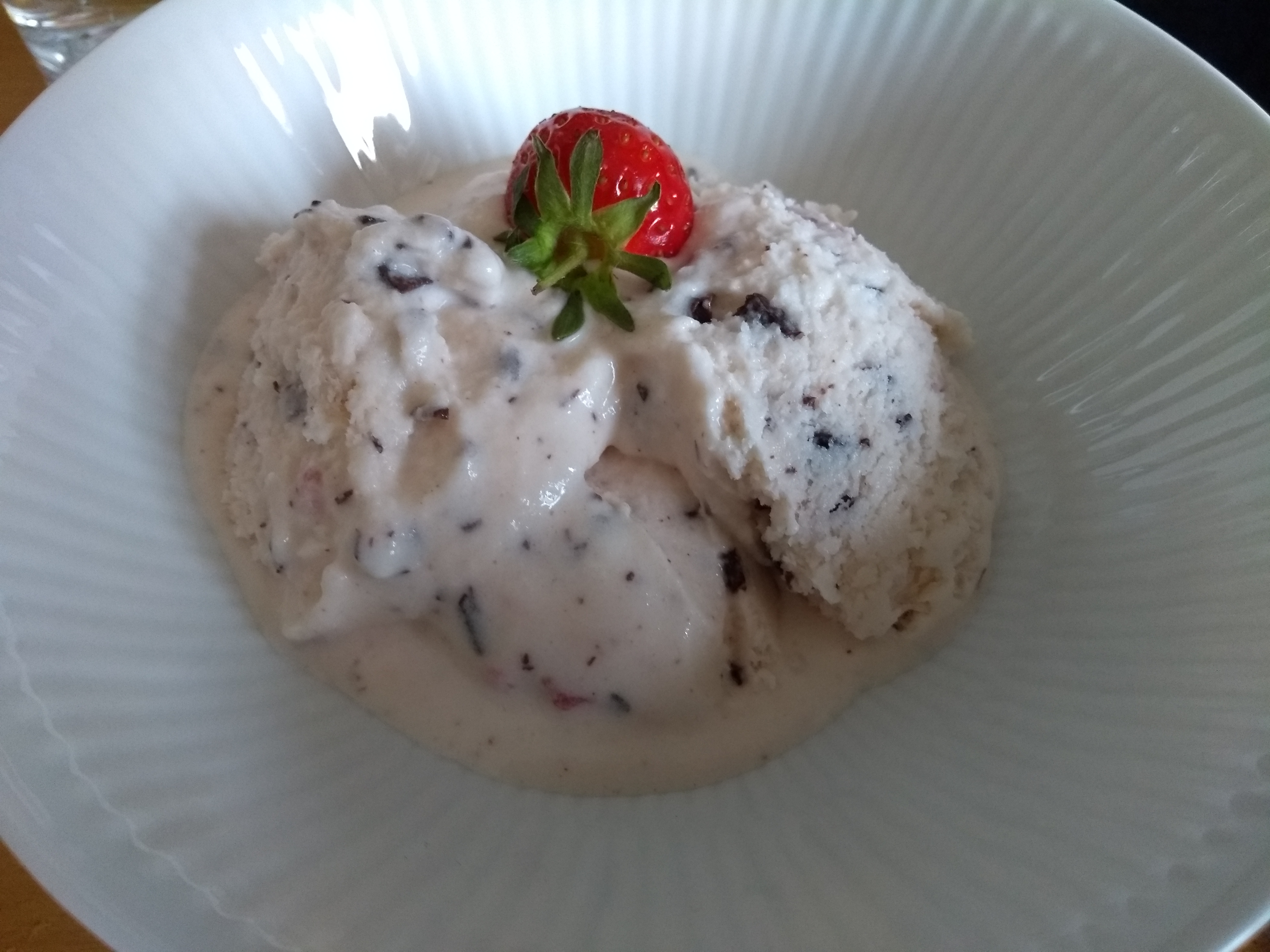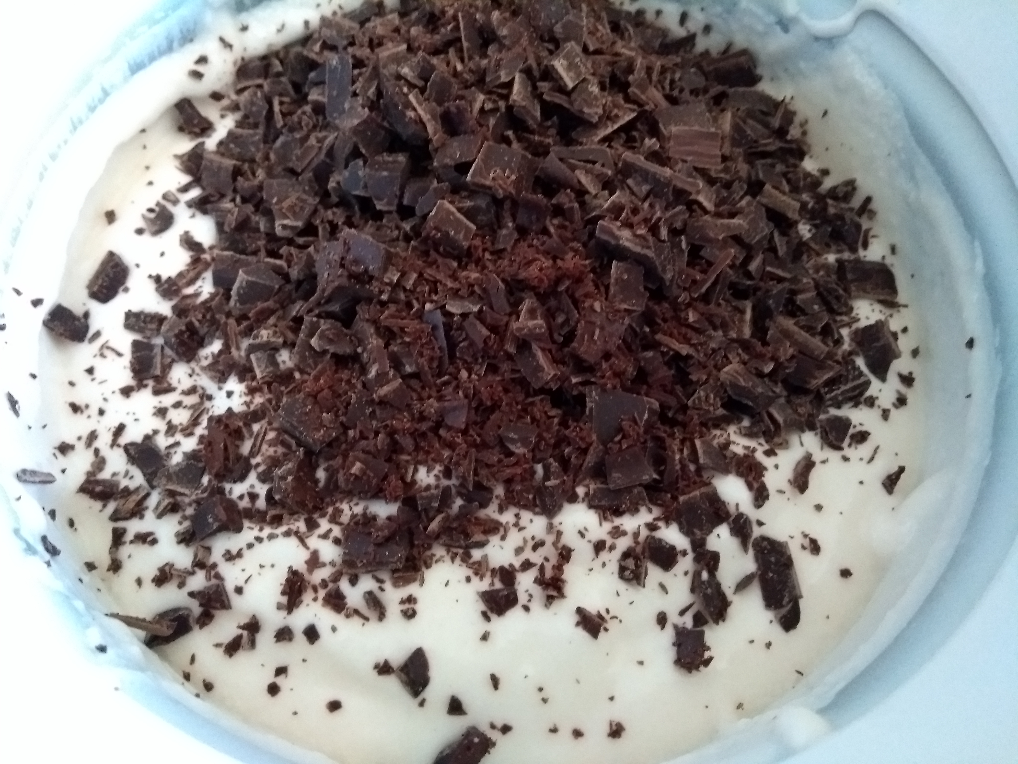 Chop 150 grams of chocolate and fold it under the ice cream.