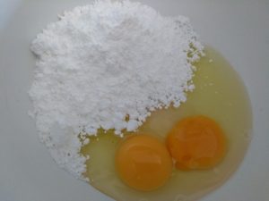 Whisk two eggs and one cup of icing sugar until light and fluffy.