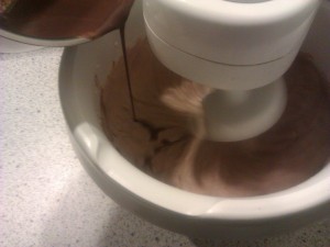 Pour in two cups of cream and one cup of milk and whisk to blend.