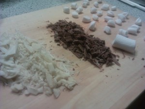 Cut 80 grams of dried dates into small pieces and put them in a bowl with hot water. After 30 minutes drain off the water.