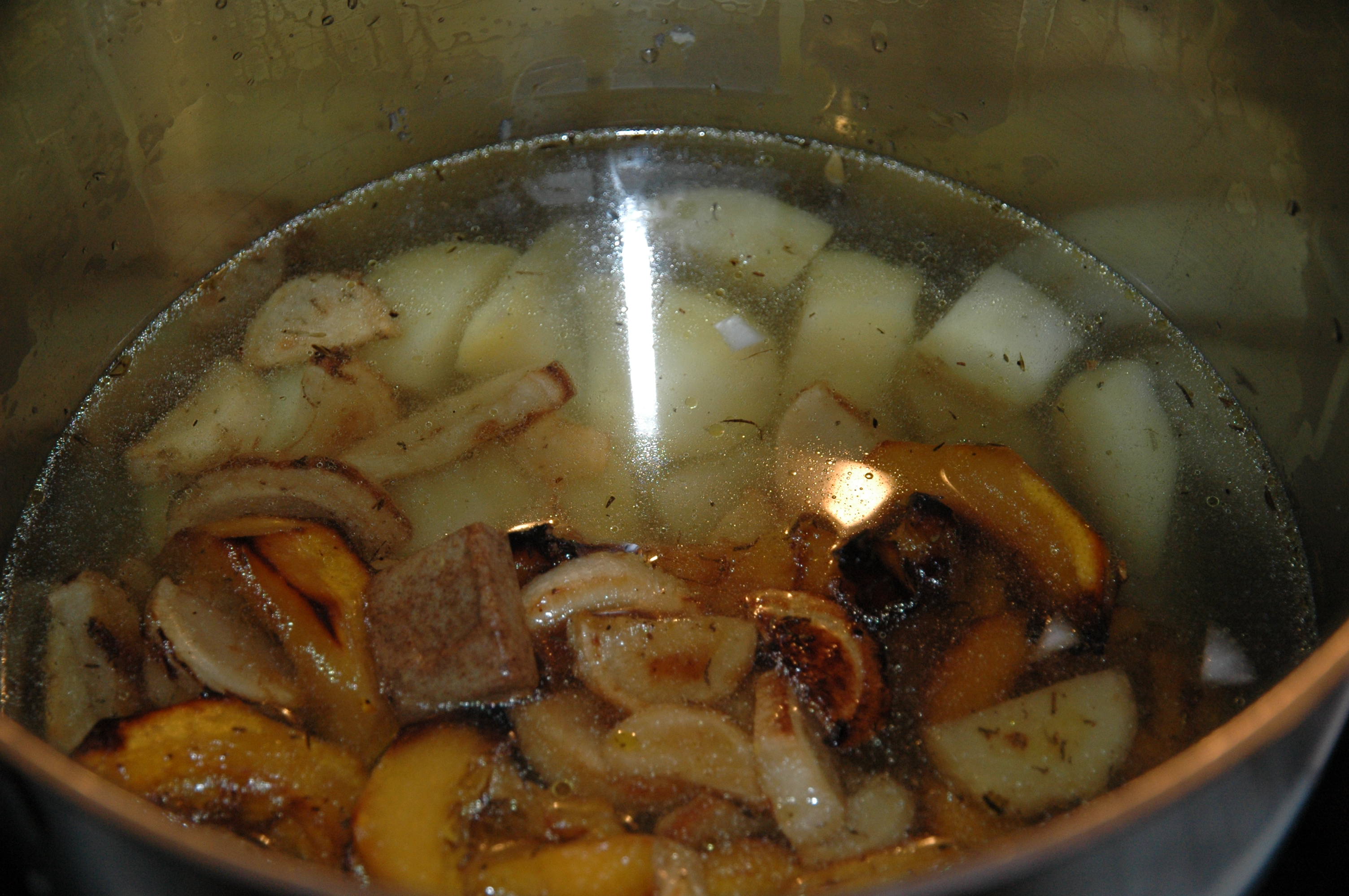 For this soup you need 1-2 cups of left-over cheese sauce as well as 4 cooked potatoes.