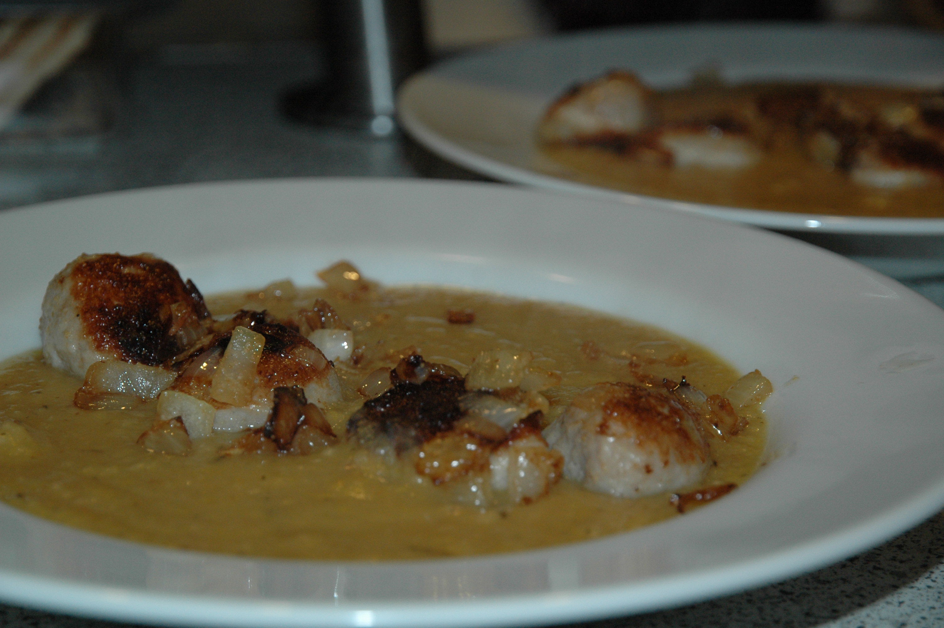 In a pot heat the cheese sauce together with the potatoes and one cup of milk. When the potatoes are really soft mash them. Spice the soup with salt and pepper.
