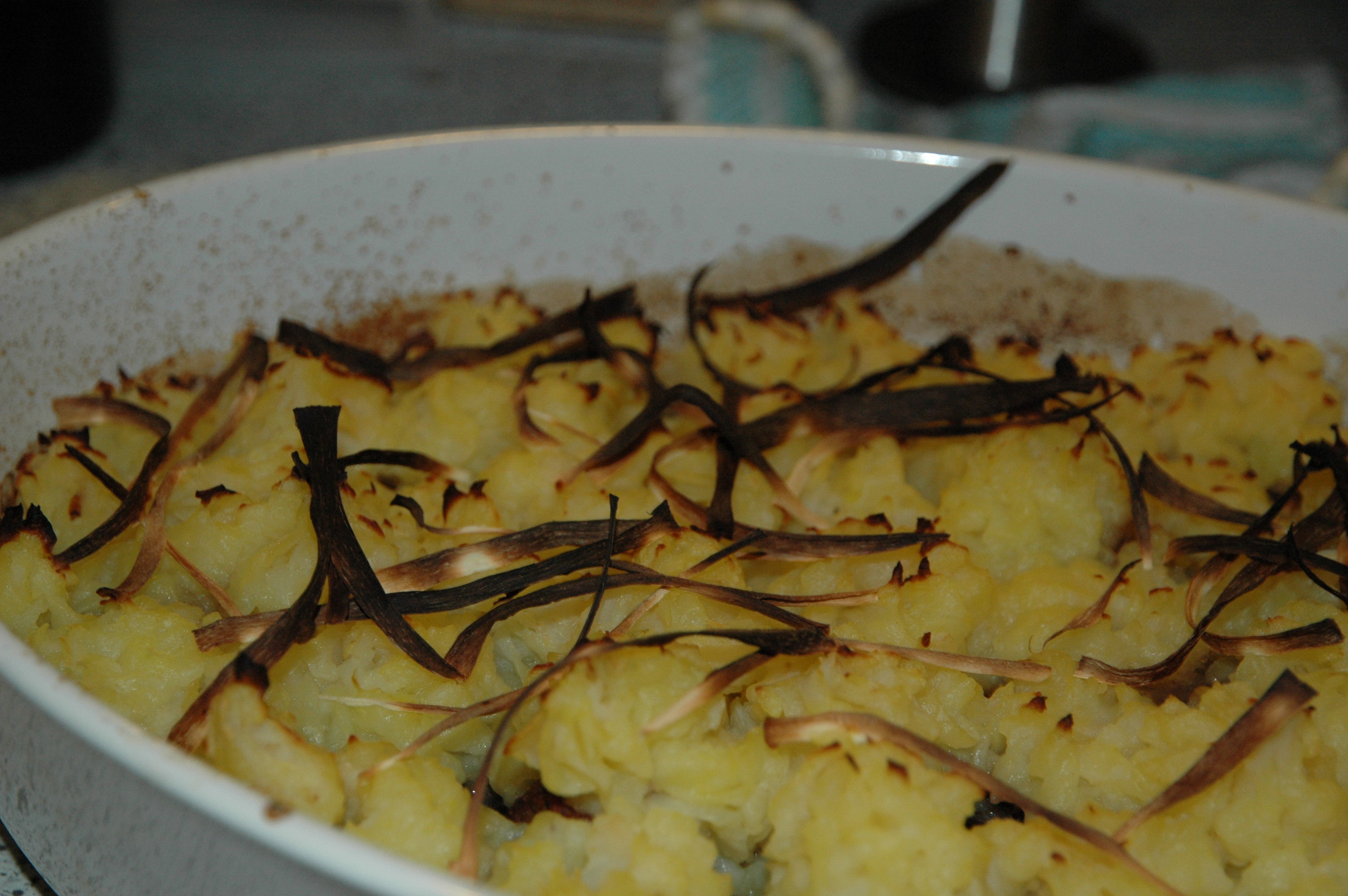 Defrost and warm up 300 grams of spinach leaves and spice it with a pinch of nutmeg. |