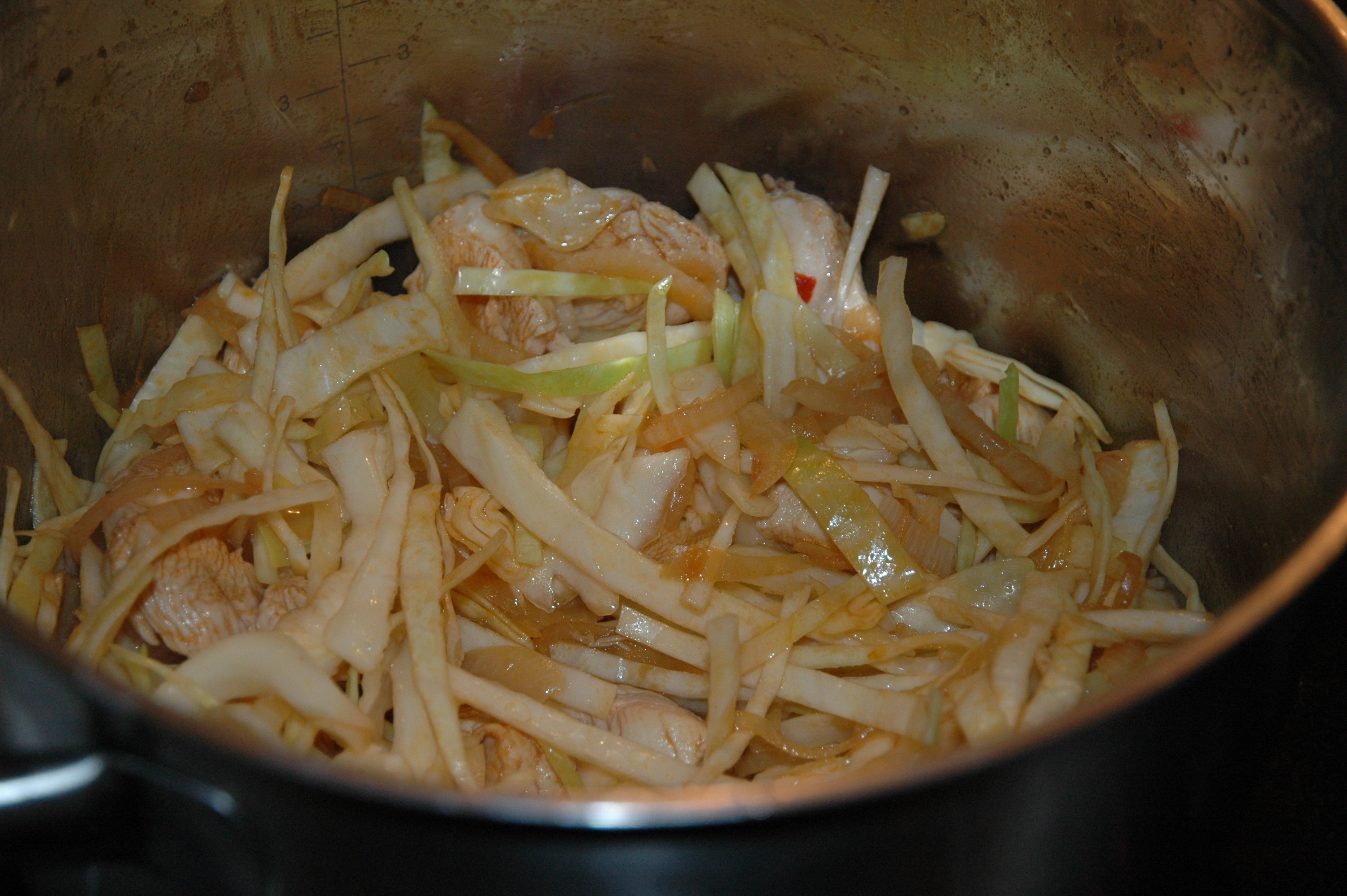 Add one cup of apple juice and one tablespoon of vegetable stock powder and let it cook for 20 minutes. Cooked Cabbage