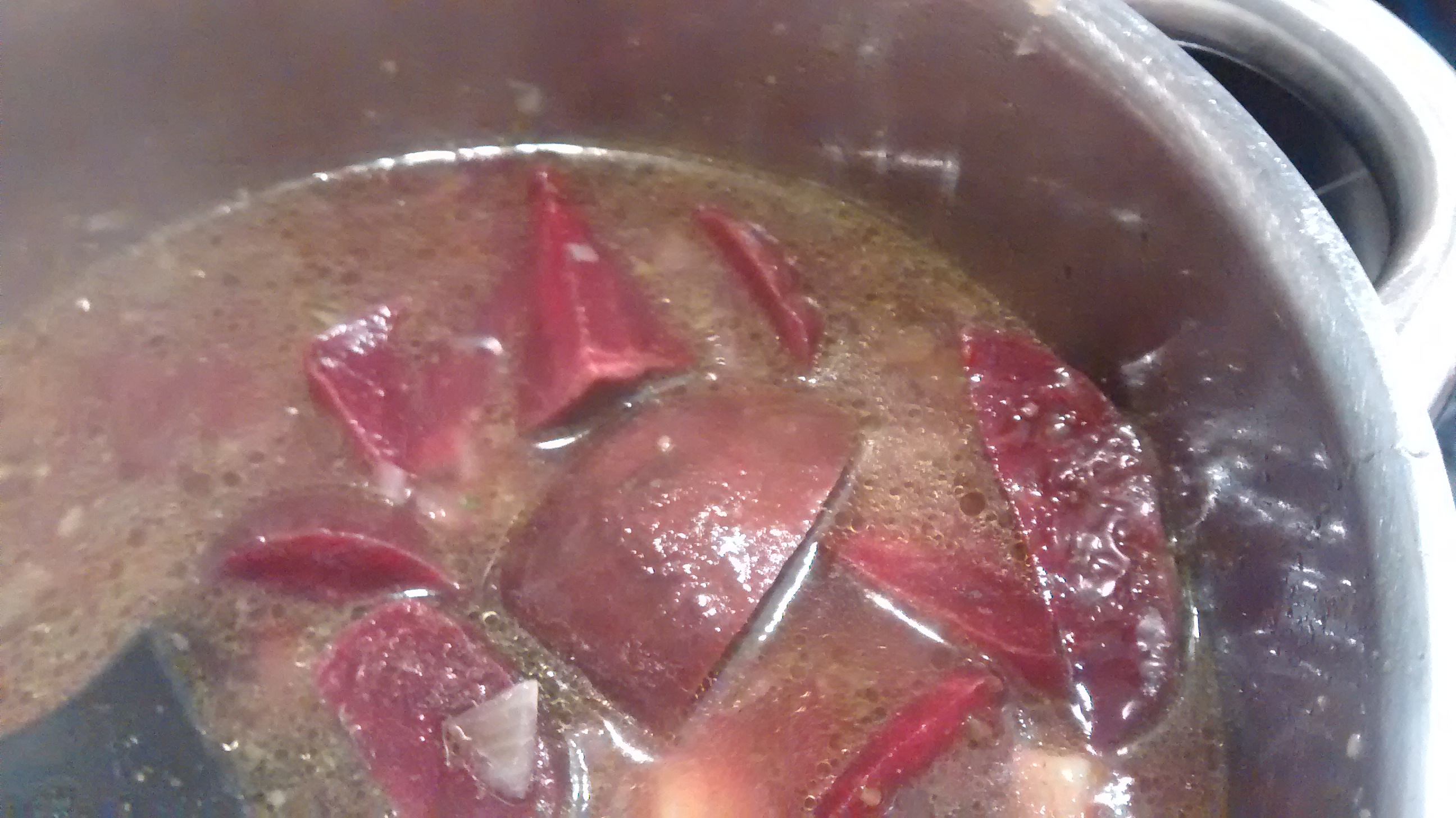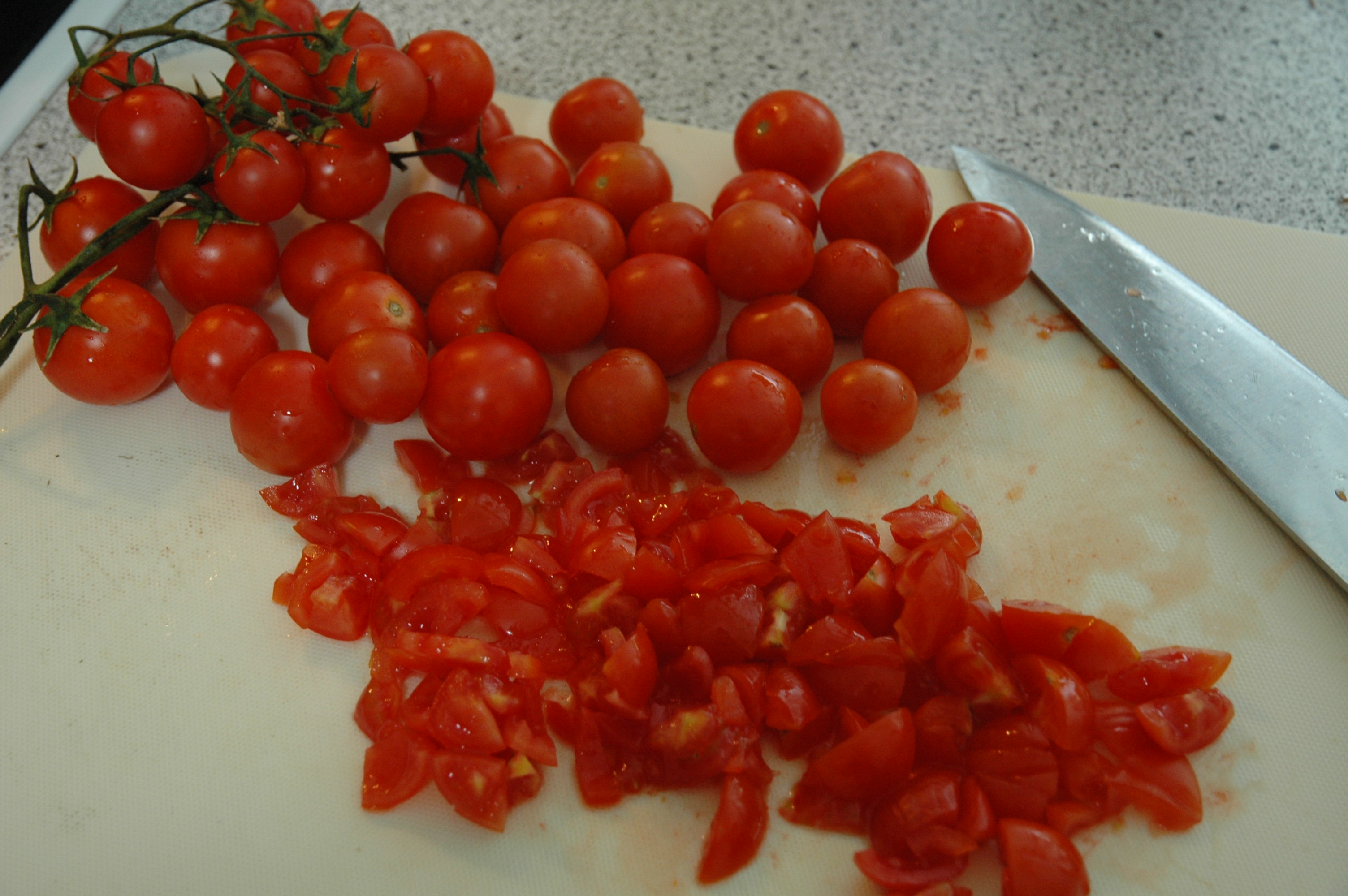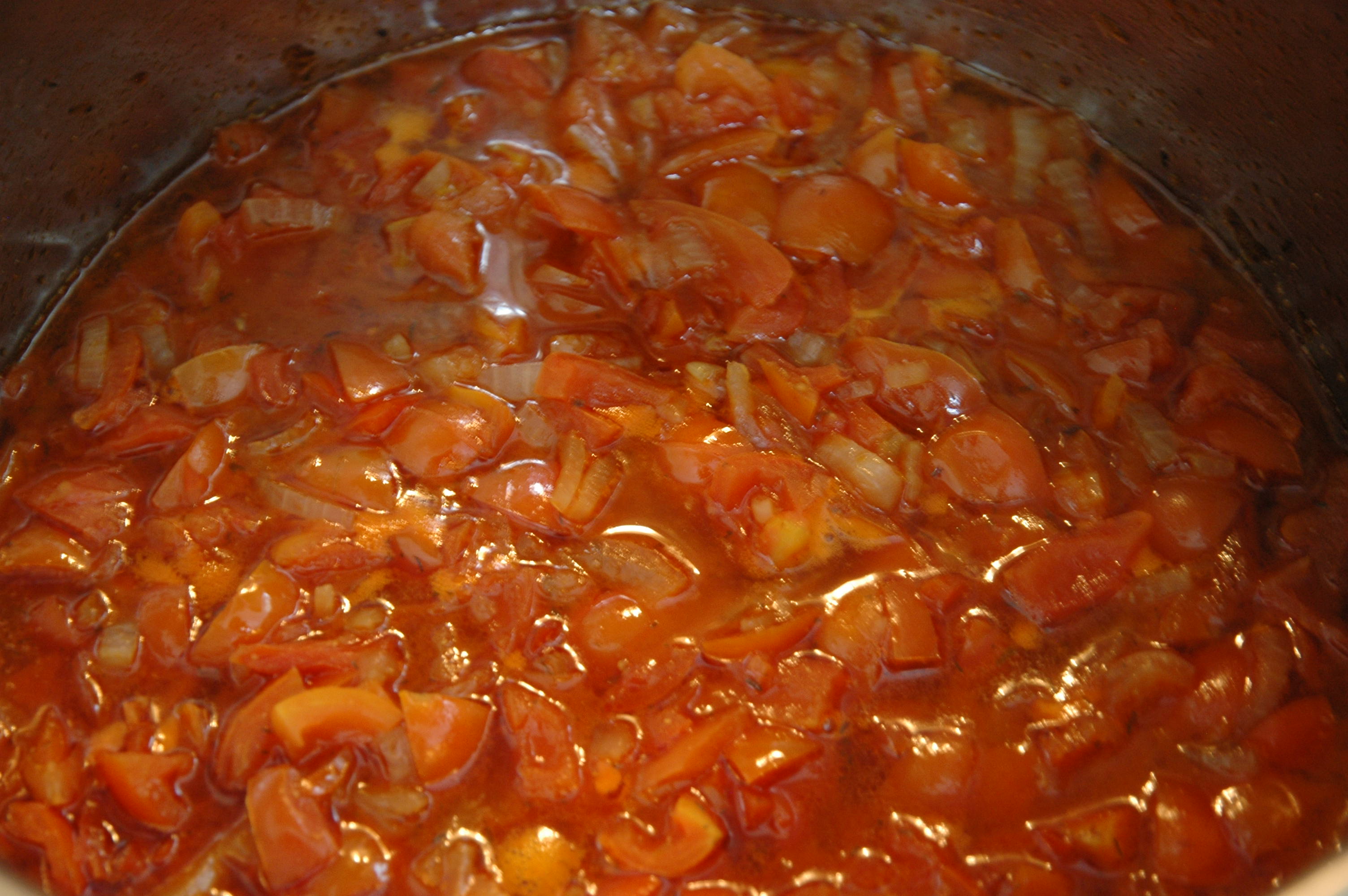 | Add two kilograms of diced tomatoes and one liter of vegetable stock. |