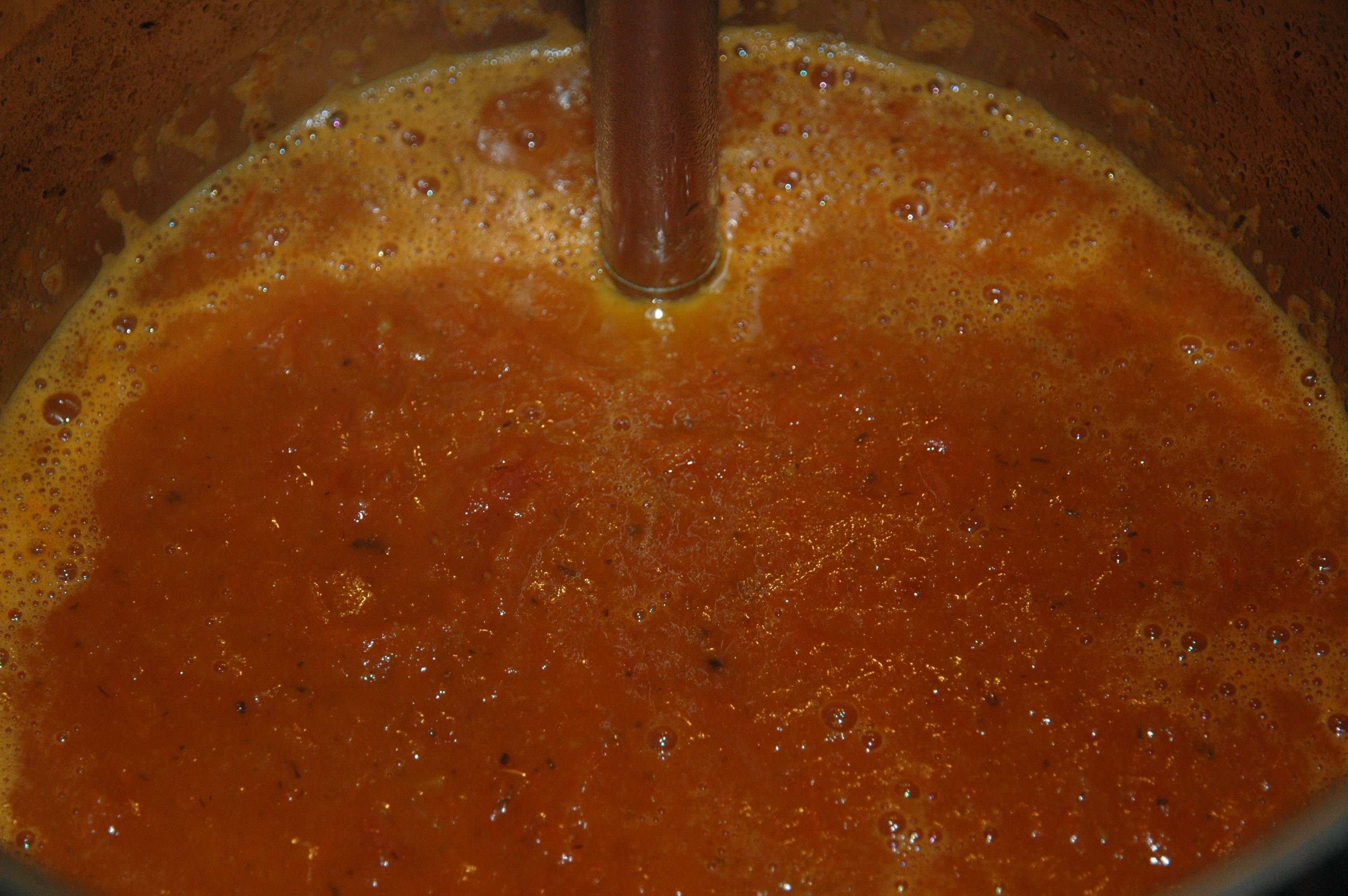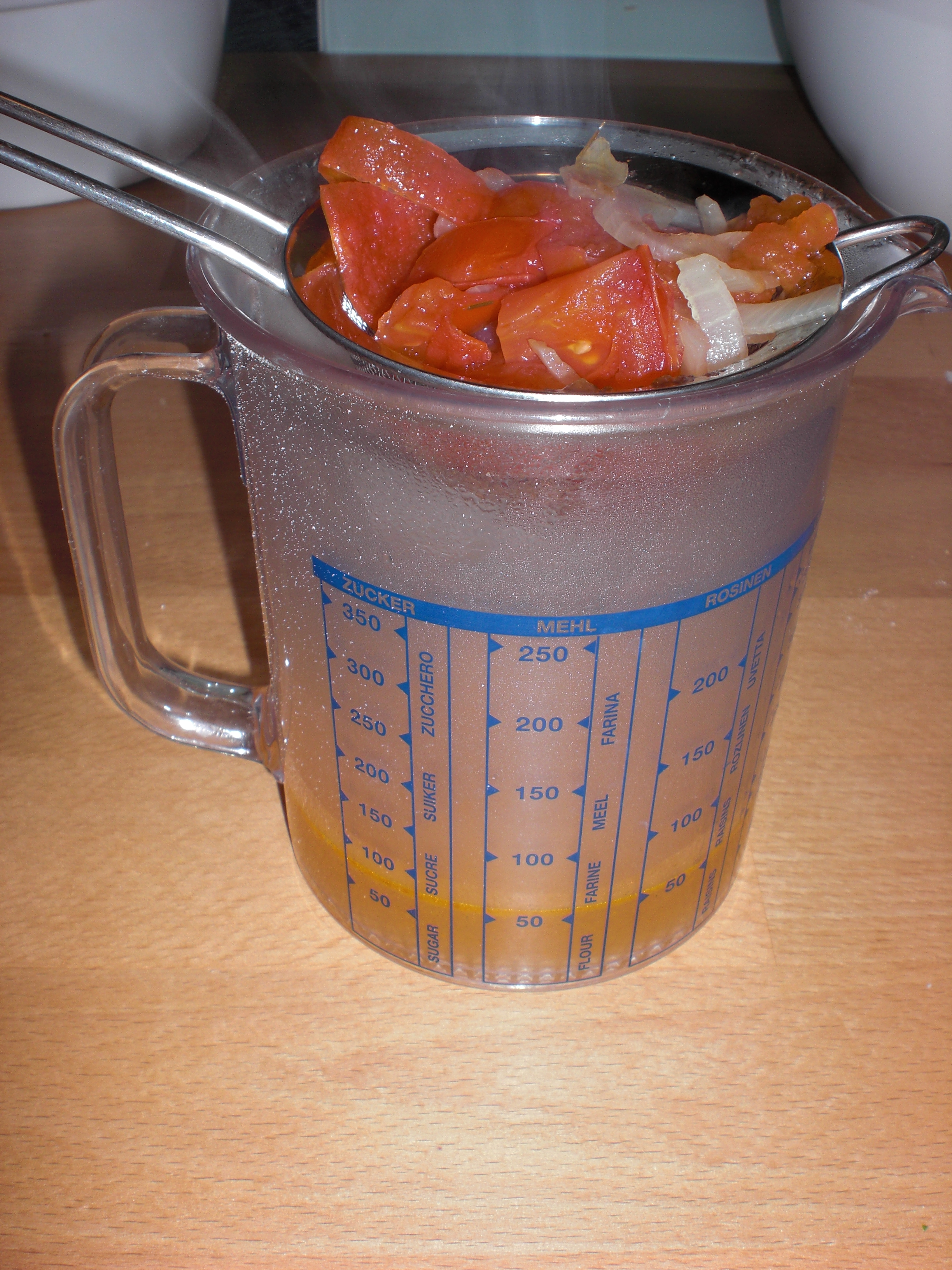 | Pass the soup through a sieve and collect the liquid. |