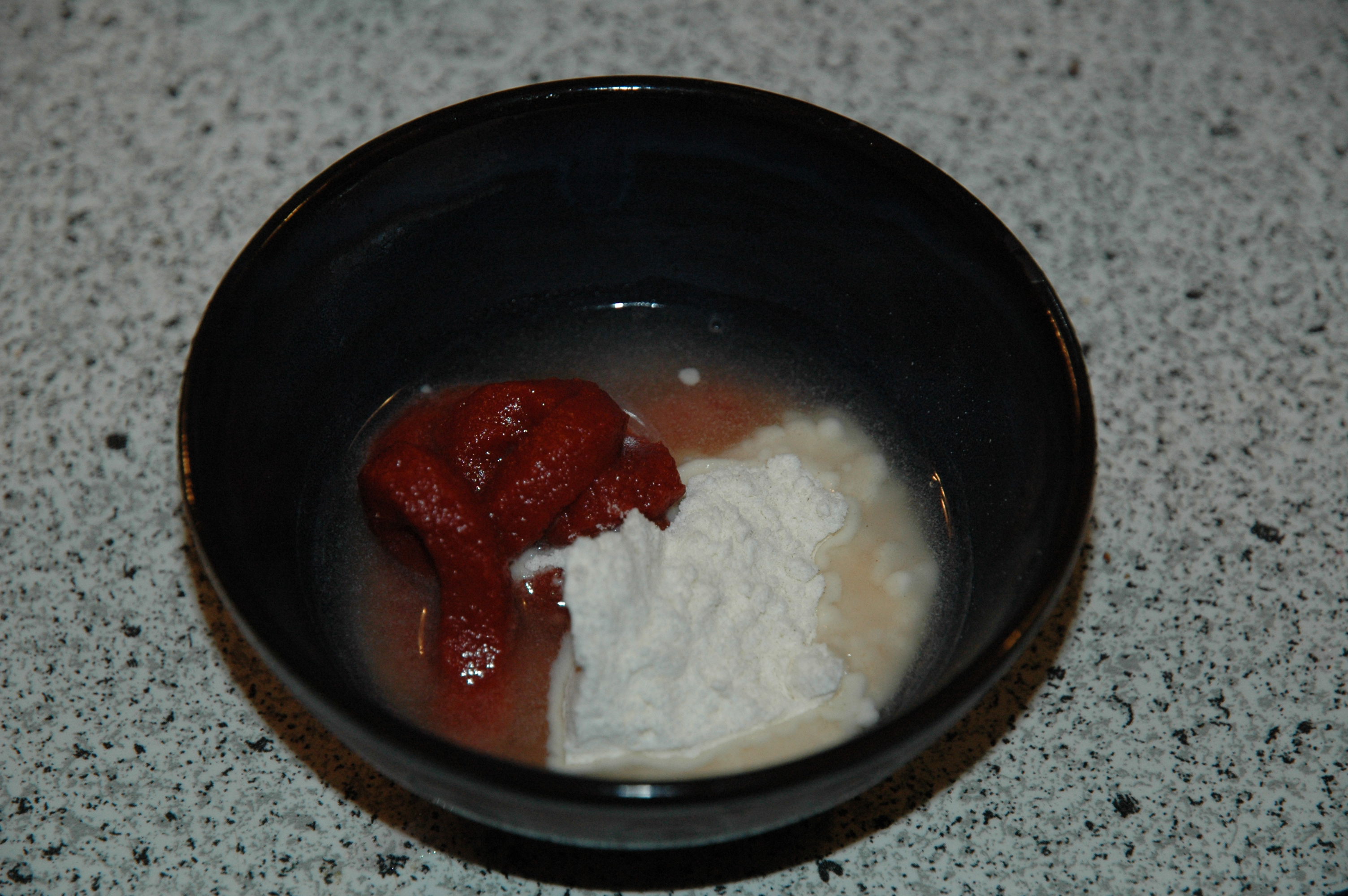 | In a small pot with half a teaspoon of saffron and half a teaspoon of grounded garlic melt one tablespoon of butter. | ![]() |