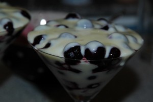 (2 servings) In a bain-marie melt 100 grams of white chocolate and add 150 grams of yoghurt. Layer the cream together with 200 grams of blueberries...