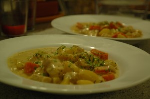 (4 servings) Peel and dice two onion and cook translucent in one tablespoon of vegetable oil. Add 500 grams of pork chops in small pieces and...