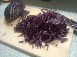 Cut or grate a white cabbage into small pieces. Put the cabbage and two diced onions, one cup of sugar, two tablespoons of pepper and one tablespoon of salt...