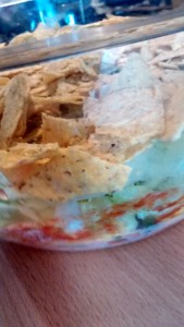 (1 bowl) Put one glass of nacho dip salsa and one cup of creme fraiche in a large salad bowl. Mix the sauce. Wash and dice 250...