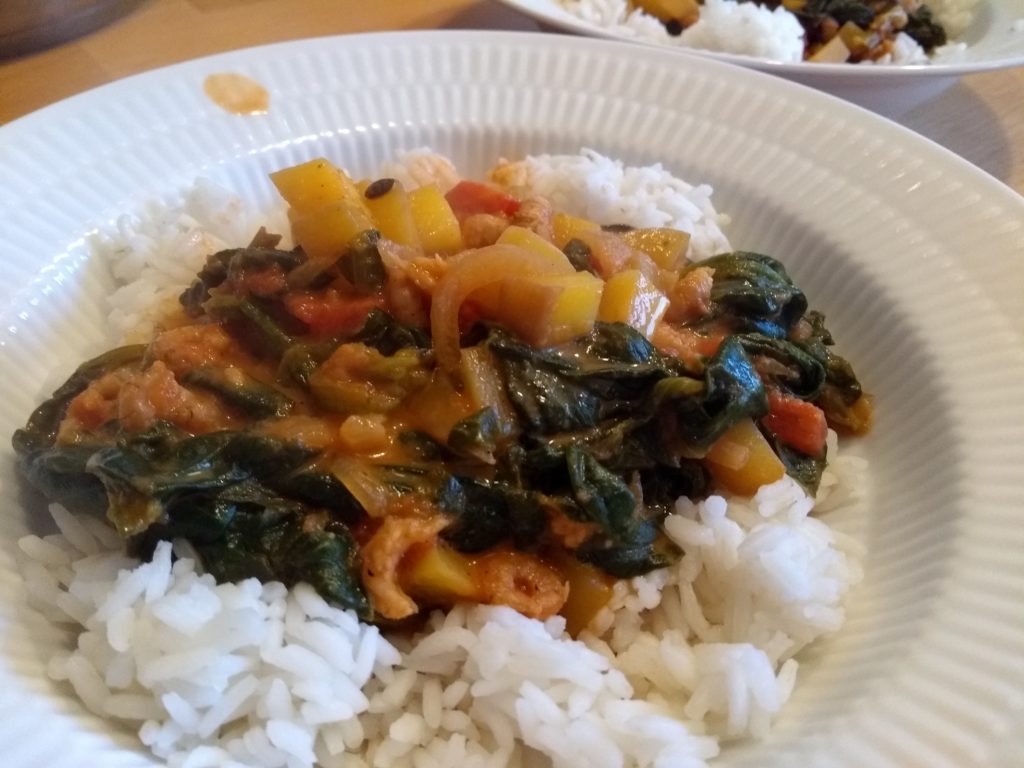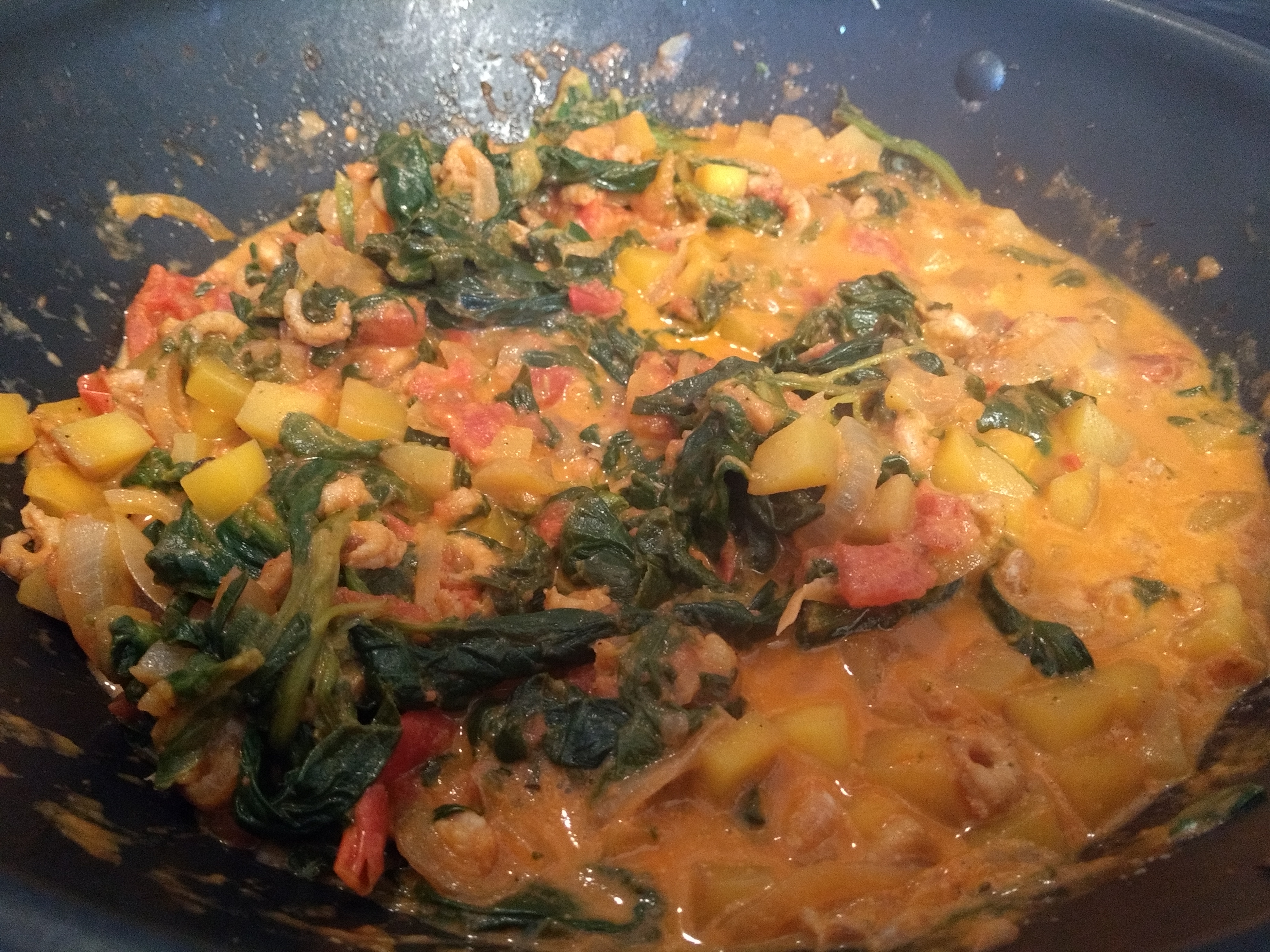 Add one cup of cream, simmer for 20 minutes and serve with rice. |